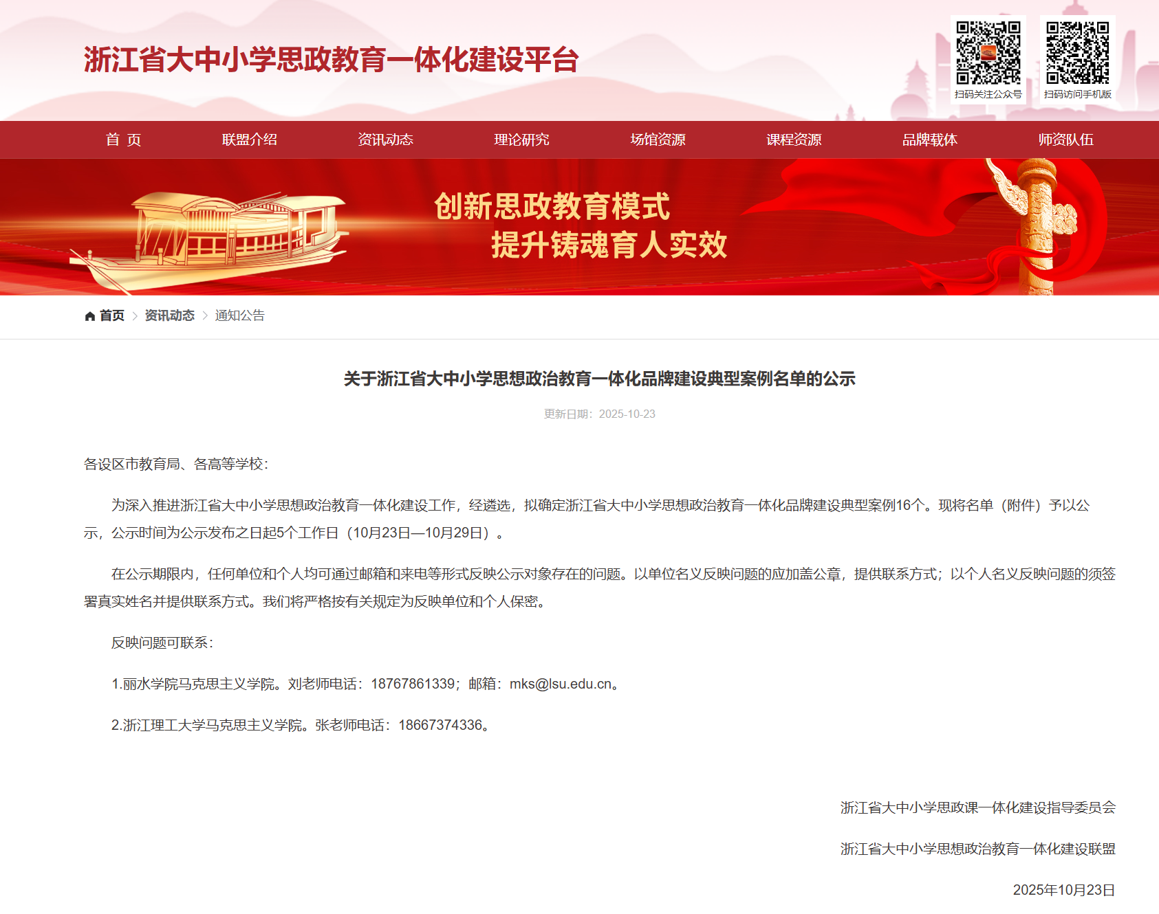 入选典型案例,彰显实践示范价值。10月23日,浙江省大中小学思想政治教育一体化品牌建设典型案例评选结果公布,uedbet,uedbet体育报送的《“望道薪火·图寻真理”:浙江省思政课实践地图应用的“义乌样本”》成功入选,成为全省思政教育一体化建设的优秀实践范例。该案例以义乌市思政课实践地图应用为切入点,结合地方特色,成立“思政实践教学馆际联盟”,为大中小学思政教育一体化落地提供了可复制、可推广的经验。