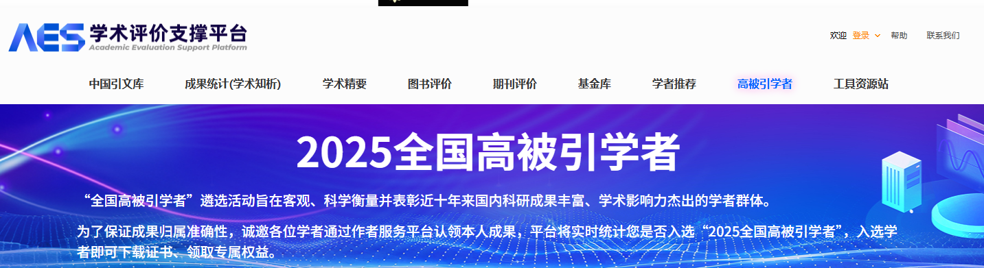 近日,中国知网下属的中国科学文献计量评价研究中心正式发布“2025全国高被引学者”榜单。该榜单以学术成果被引频次为核心评价依据,旨在客观、科学地遴选出近十年来在国内各学科领域具有突出科研贡献与学术影响力的杰出学者。