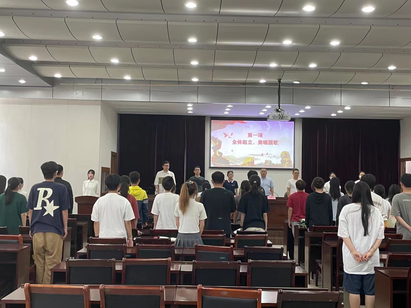 6月1日中午,人文旅游学院第十四期分党校开班仪式在文美厅隆重举行。人文旅游学院党委负责人、学工党支部全体老师以及在校预备党员和入党积极分子参加了开班仪式。 开班仪式在庄严的国歌中拉开序幕。学院党委负责人首先致辞,介绍本次分党校培训的目的,希望全体学员要加强理论学习,提高党性修养;随后,预备党员代表和学员代表分别围绕自身经历分享了入党经历和个人感受,呼吁学员们要端正入党动机,积极向党组织靠拢,争取早日入党。