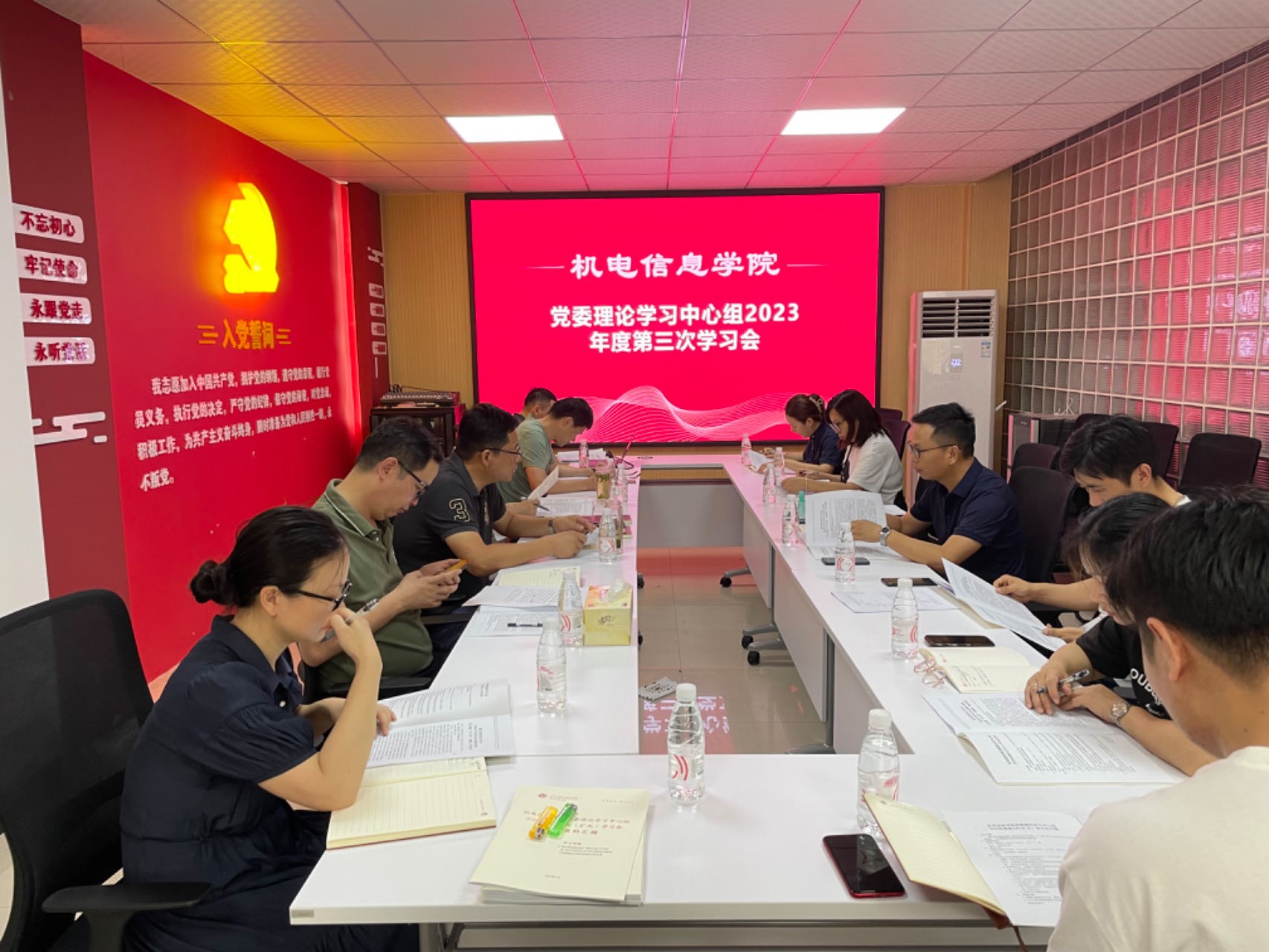 7月2日上午,机电信息学院党委理论学习中心组举行2023年度第3次(扩大)学习会。党委书记周刚主持会议,院长吴俊作中心发言。学院领导班子成员,办公室、教科办、学工办(团委)、继教部全体成员,专业主任,党支部书记及支部委员,纪委委员、组织员等参加会议。