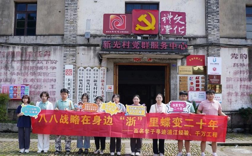 今年正值“八八战略”实施二十周年,义乌工商职业技术学院经济管理学院“八八战略 ‘经’日观察”实践团的青年学生来到金华浦江县,在乡村一线学习“千万工程”,在绿水青山中感悟“浦江经验”。本次团队实践以在“浙”里“浦”写新时代乡村故事为主题主线,利用文献查阅、实地考察、访谈调研等方法切身体会八八战略、浦江经验在新时代乡村的伟大实践。