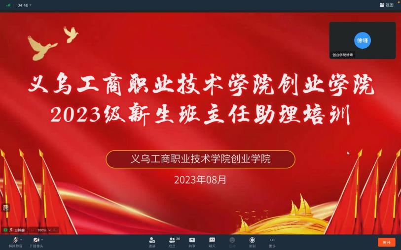为全面提升新生班主任助理综合素质,扎实推进2023级新生入学工作,8月6日-10日,创业学院通过钉钉直播开展了为期五天的新生班主任助理培训。本次培训邀请了创业学院党委负责人及全体学工办辅导员进行指导,2023级新生候选班主任助理和学院团委学生会主席团成员共同参与。