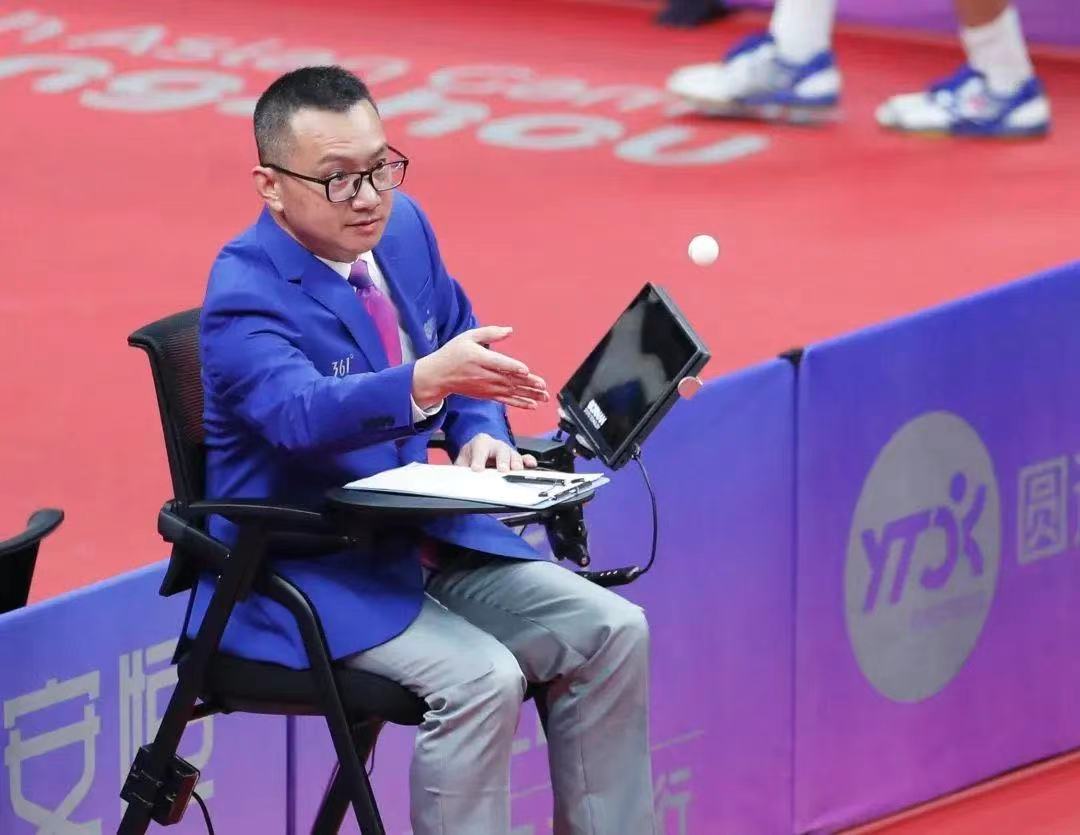 华承健,副教授,乒乓球国际级裁判,每年都会参与国际国内等一些重大比赛的执裁工作,如全运会乒乓球比赛、中国乒超联赛、国际乒联巡回赛等赛事。此次亚运会,他担任乒乓球国际技术官员,并作为主裁判执裁8场亚运会乒乓球比赛(4场现场直播)。