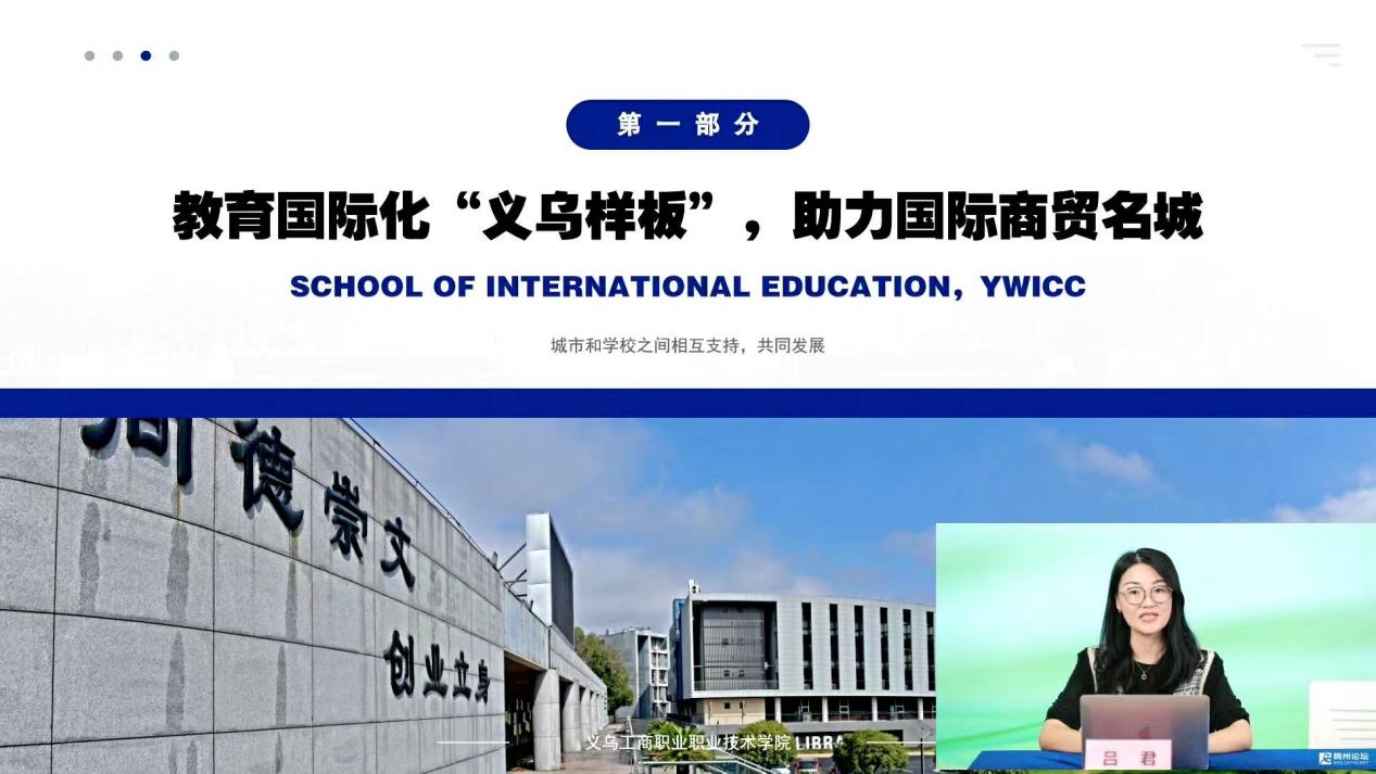 吕君提到,近年来,学校立足“根植义乌、服务区域、走向国际”的办学定位,紧密结合学校优势和特色专业,开展教育对外交流与合作,引导国际学生了解并认同义乌的发展历程,融入并服务义乌经济社会发展,成为中外交流的重要使者,提升学校的国际影响力和义乌城市知名度。