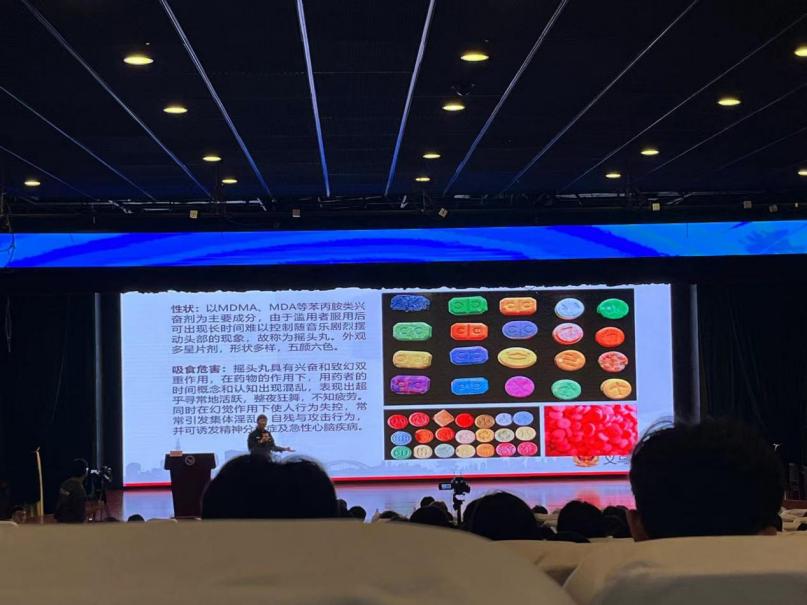 俞骁警官还就“远离毒品,珍爱生命”这一主题展开叙述,从传统毒品至新型毒品,如“贴纸”“糖片”“笑气”的形态和具体危害进行科普,再到对如何防范毒品进行指导,通过相关统计数据揭示“毒品一沾,悔恨终身”的深刻警示。