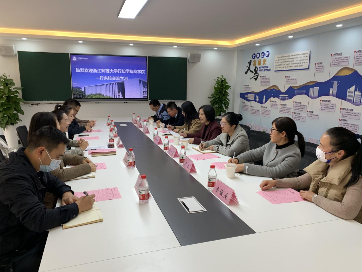 11月29日下午,浙江师范大学行知学院商学院院长麻勇爱一行7人来uedbet,uedbet体育考察交流。经济管理学院教学负责人,金融服务与管理、工商企业管理专业负责人及相关专任教师参加座谈。