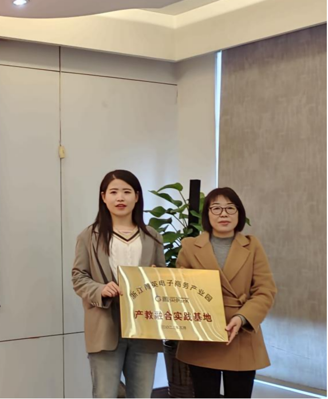浙江菁英电商产业园校企合作负责人授牌学院“青芒”专创工作室为产教融合实践基地。
