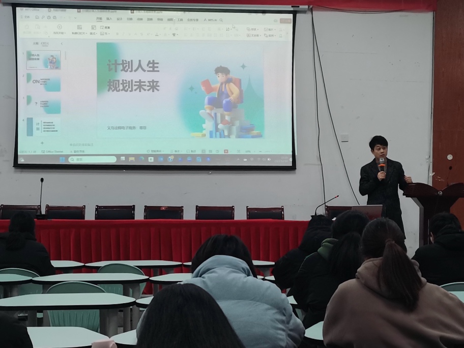 12月18日下午,为了让同学们了解职业规划的重要性,创业学院邀请了义乌市诠释电子商务有限公司法人叶霆为主讲人,在雪峰报告厅开展了“雪峰论道”系列讲座之“计划人生,规划未来”。