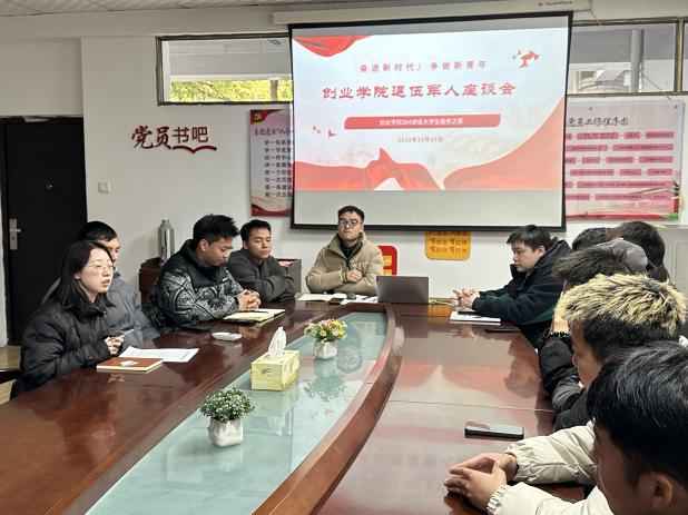 为扎实推进国防教育,强化退伍大学生责任与担当,增强使命感与归属感,同时了解退役大学生思想动态和现实困难,切实做好uedbet,uedbet体育退伍大学士兵管理培养服务工作,12月20日下午,创业学院开展退伍复学学生座谈会,特邀优秀毕业校友、浙江省“十佳大学生”获得者何宇迪同学视频参会,学院辅导员代表、优秀“戎”耀学长代表和学院在校退役复学学生24人参与座谈。