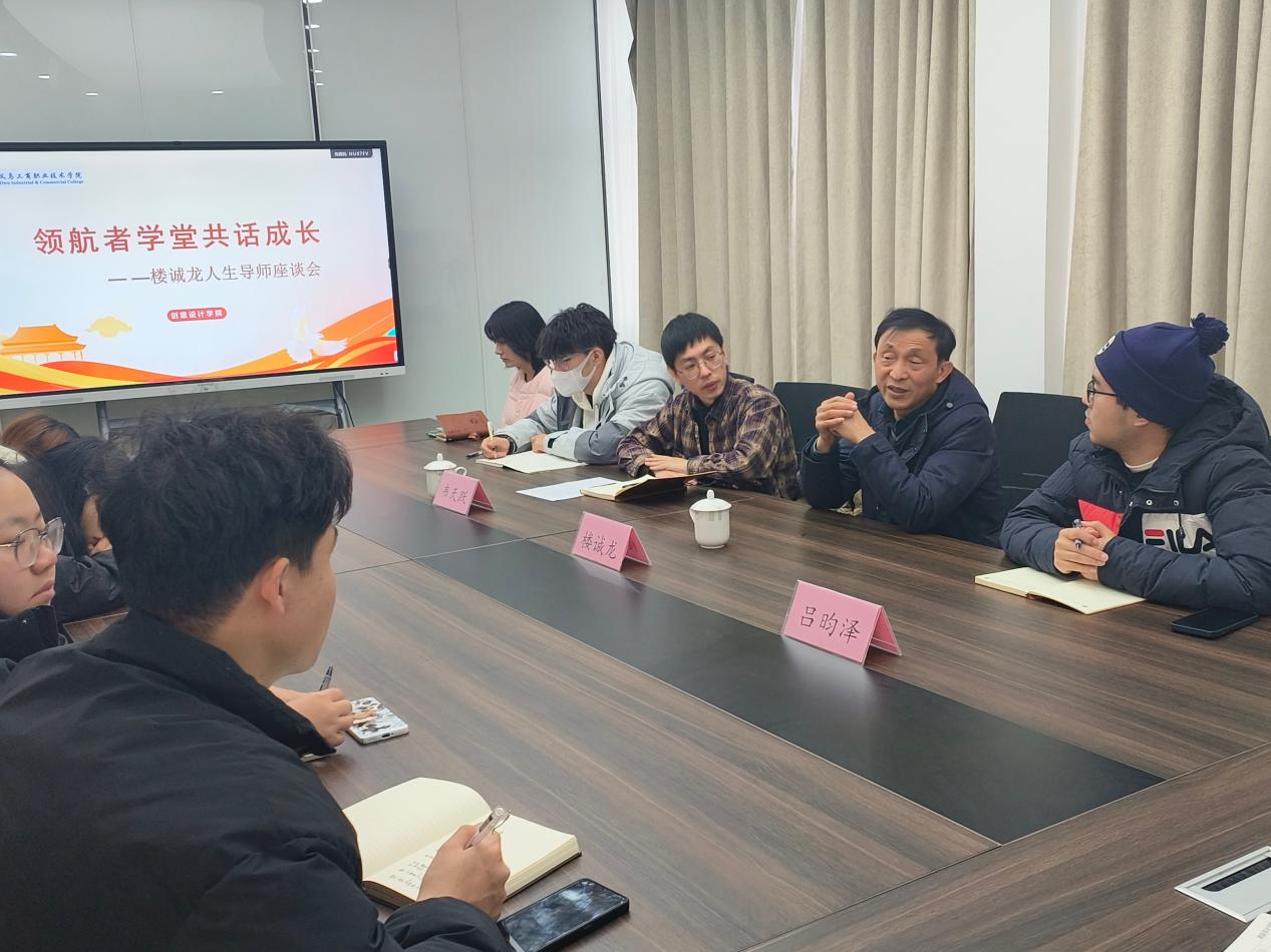 为解决学生在大学生涯中碰到的具体难题和困惑,帮助学生确定个人发展方向,促进师生交流,助力学生成长,我院特邀学校特聘人生导师楼诚龙大师,于2023年12月20日在创意设计中心开展了“领航者学堂共话成长——楼诚龙人生导师座谈会”。