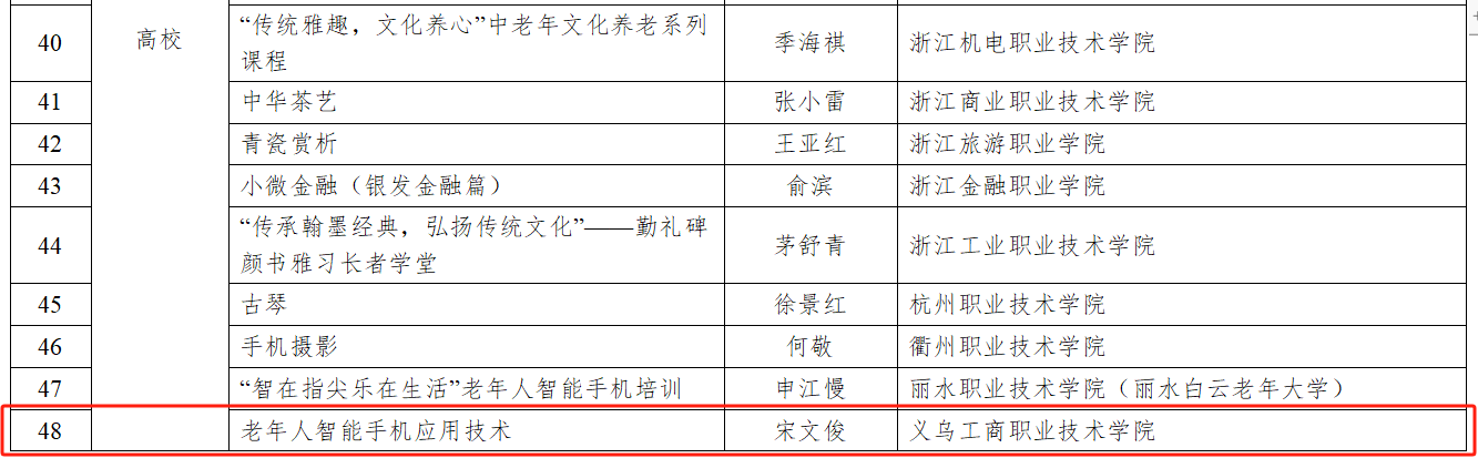 近日,中共浙江省委老干部局、浙江省教育厅、浙江省卫生健康委员会发布了《uedbet,uedbet体育公布2023年浙江省老有所学相关项目名单的通知》和《uedbet,uedbet体育公布2023年浙江省老年教育优质师资库名单的通知》,uedbet,uedbet体育马克思主义学院宋文俊老师负责的《老年人智能手机应用技术》成功入选省级老年教育特色课程,宋文俊、张瑞芳两位老师同时入选全省老年教育优质师资库名单、全省老年教育“领雁”教师培养对象。这是uedbet,uedbet体育老年教育特色项目推介和师资培养的重大突破。