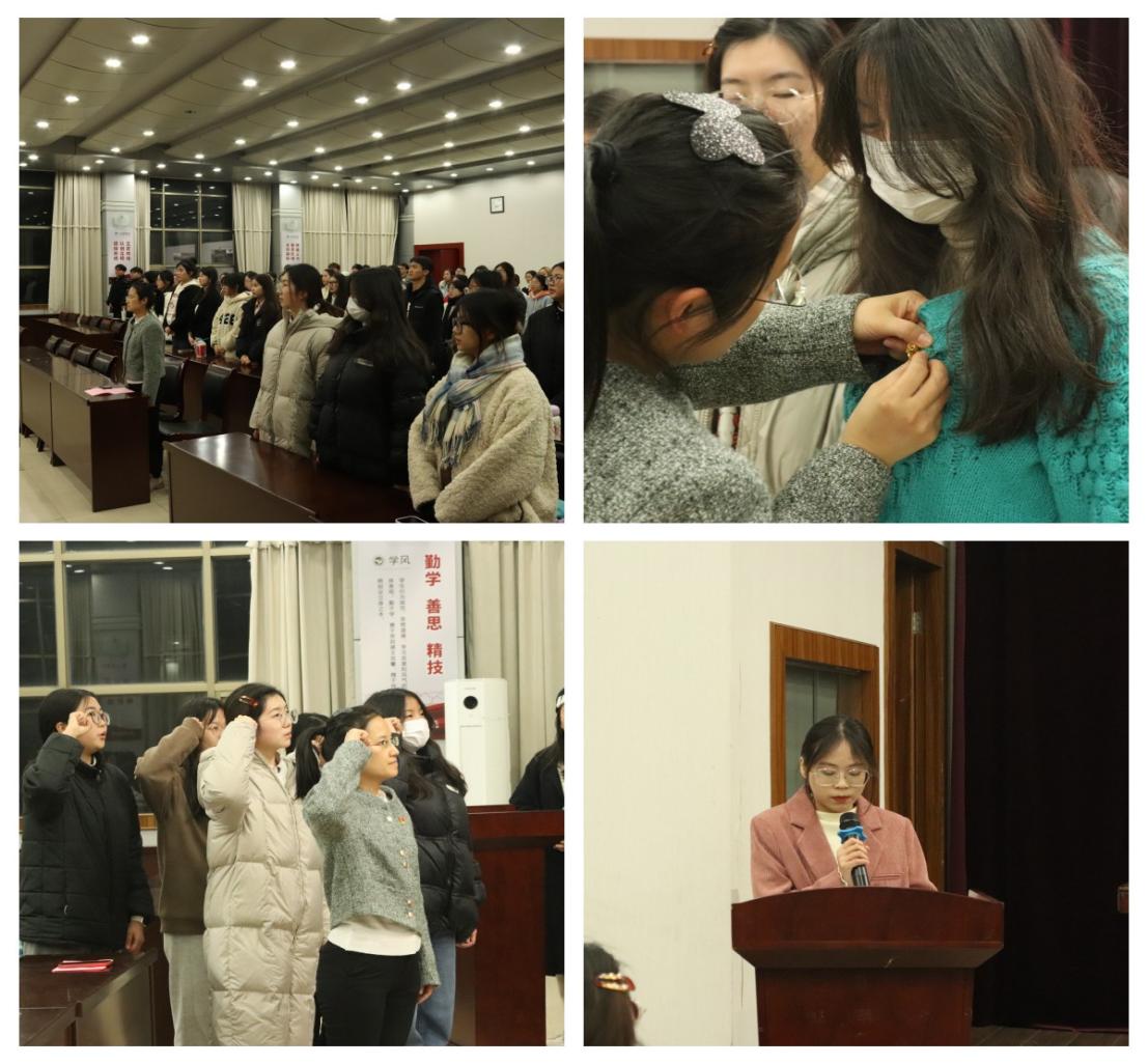 活动第一阶段是预备党员宣誓仪式。仪式由学工党支部负责人主持,伴着庄严的《国际歌》,入党宣誓仪式正式开始,十四名最新发展的预备党员举起右手进行了庄严宣誓。活动第二阶段是小组总结汇报。本期分党校对学员实行分组管理,积极推进学员开展自主学习实践活动,由预备党员和入党积极分子组成的6个学习小组以“寝室消防安全和防骗教育”为主题分别进行了PPT展示汇报,结合自己在小组实践活动中的经历从不同方面展示了小组成员进行寝室消防安全宣传和防骗教育的具体做法。最后,学工党支部负责人宣布本期分党校顺利结业,同时鼓励全体入党积极分子以此作为新的起点,在今后的学习生活中要认真学习科学文化知识,不断提高自己的政治理论素养,争取早日入党。