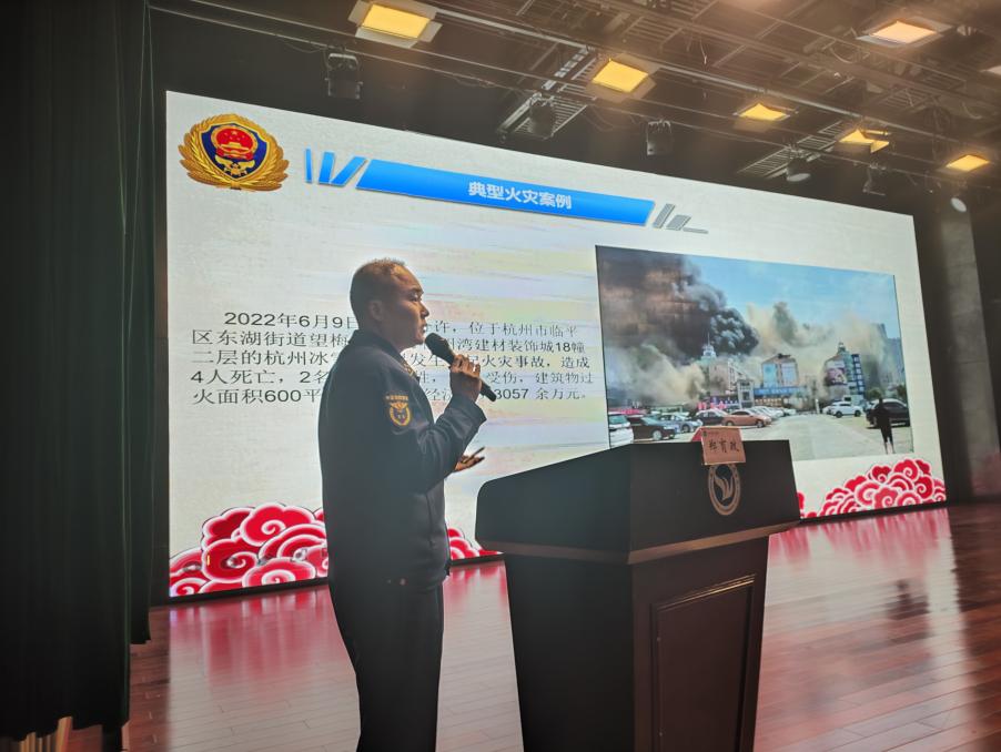 义乌市消防救援支队郑育政围绕日常消防安全这一主题,从典型的火灾案例解读、遇到火灾该怎么办、日常的消防安全习惯等三个方面展开宣讲。一张张触目惊心的消防安全事故照片、一组组惨痛的安全事故伤亡数据,让同学们强烈感受到“火灾猛于虎”。同学们纷纷表示,在今后的学习和生活中,要用心提升自身的应急处理能力,更加注重日常消防安全,养成好的用电习惯。