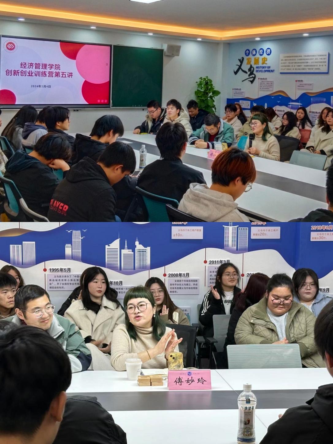 为帮助学生梳理创业思路,解答创业难题,3月4日,经济管理学院在宾王长廊212开展创新创业训练营第三十五讲。座谈会特邀市场营销专业第一届毕业生,义乌市捷豪竹木制品有限公司总经理、中国小商品城日用百货商会副会长、义乌市竹产业协会副会长、义乌市市场对外拓展协会副会长、商场集团大数据公司Chinagoods平台官方讲师傅妙玲女士主讲。