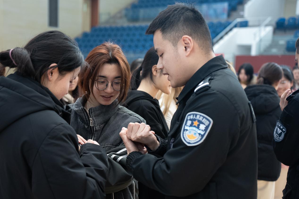 第114个“三八国际妇女节”到来之际,为增强广大女性同胞的安全防卫意识和自我保护能力,3月7日下午,学校邀请义乌市公安局巡特警大队民警进校开展女子防身术体验活动。