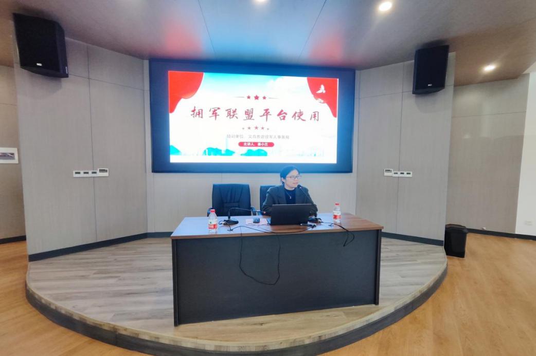 3月20日下午,一场别开生面的“拥军联盟”使用培训及宣传活动在义乌市教育研修院成功开展。本次活动由义乌市退役军人事务局、义乌工商职业技术学院以及北苑街道联合举办,旨在提升社会各界对“拥军联盟”数字平台的认识和利用,进一步营造全社会尊崇军人的浓厚氛围。义乌市退役军人事务局副局长何庆丰、义乌市退役军人事务局拥军优抚科相关工作人员、北苑街道退役军人、北苑街道相关工作人员及志愿者等100余人参加了此次活动。
