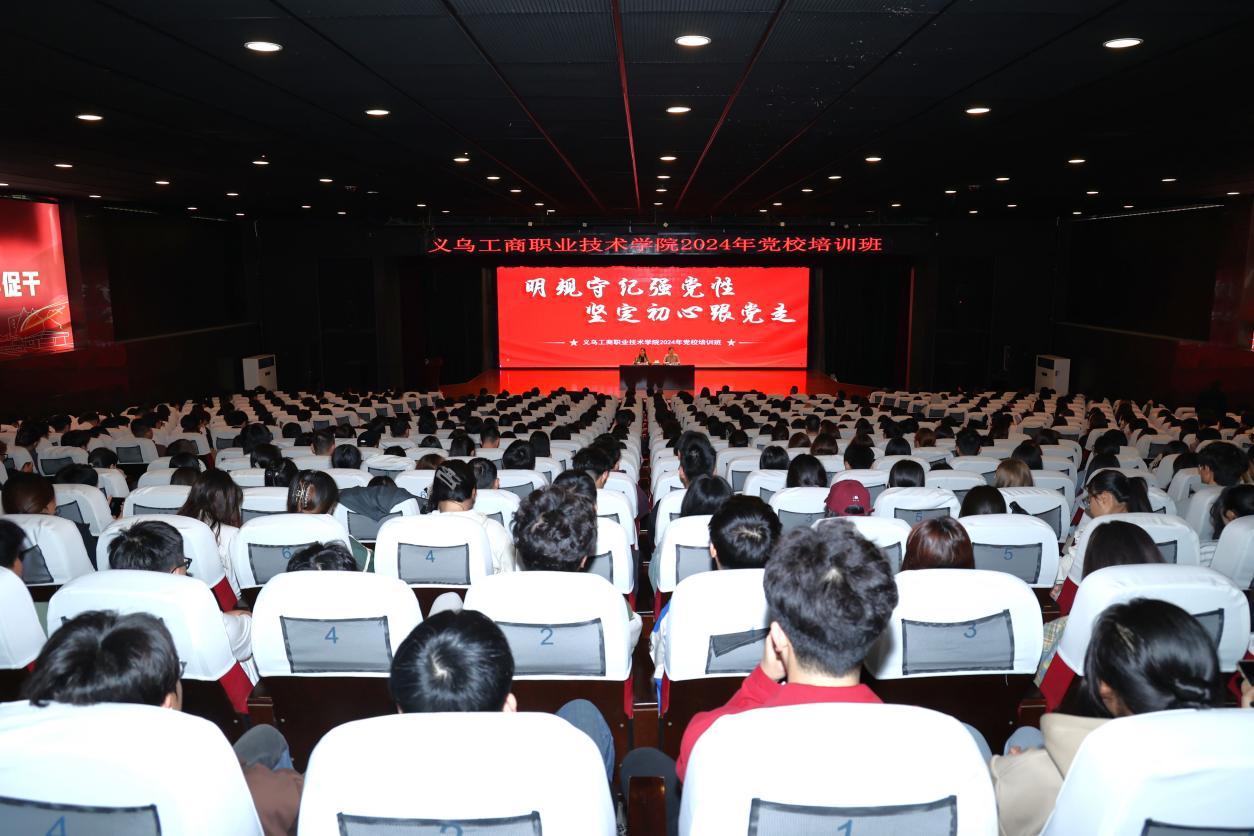 中国共产党义乌工商职业技术学院第二次党代会即将召开,为深入学习贯彻习近平新时代中国特色社会主义思想和党的二十大精神,帮助入党积极分子和发展对象坚定理想信念、增强党性修养、端正入党动机,4月12日至13日,学校举办“明规守纪强党性 坚定初心跟党走”2024年党校培训班。校党委委员、副院长徐美燕出席开班仪式,二级党组织相关负责人、组织员、学生发展对象、入党积极分子共600余人参加。