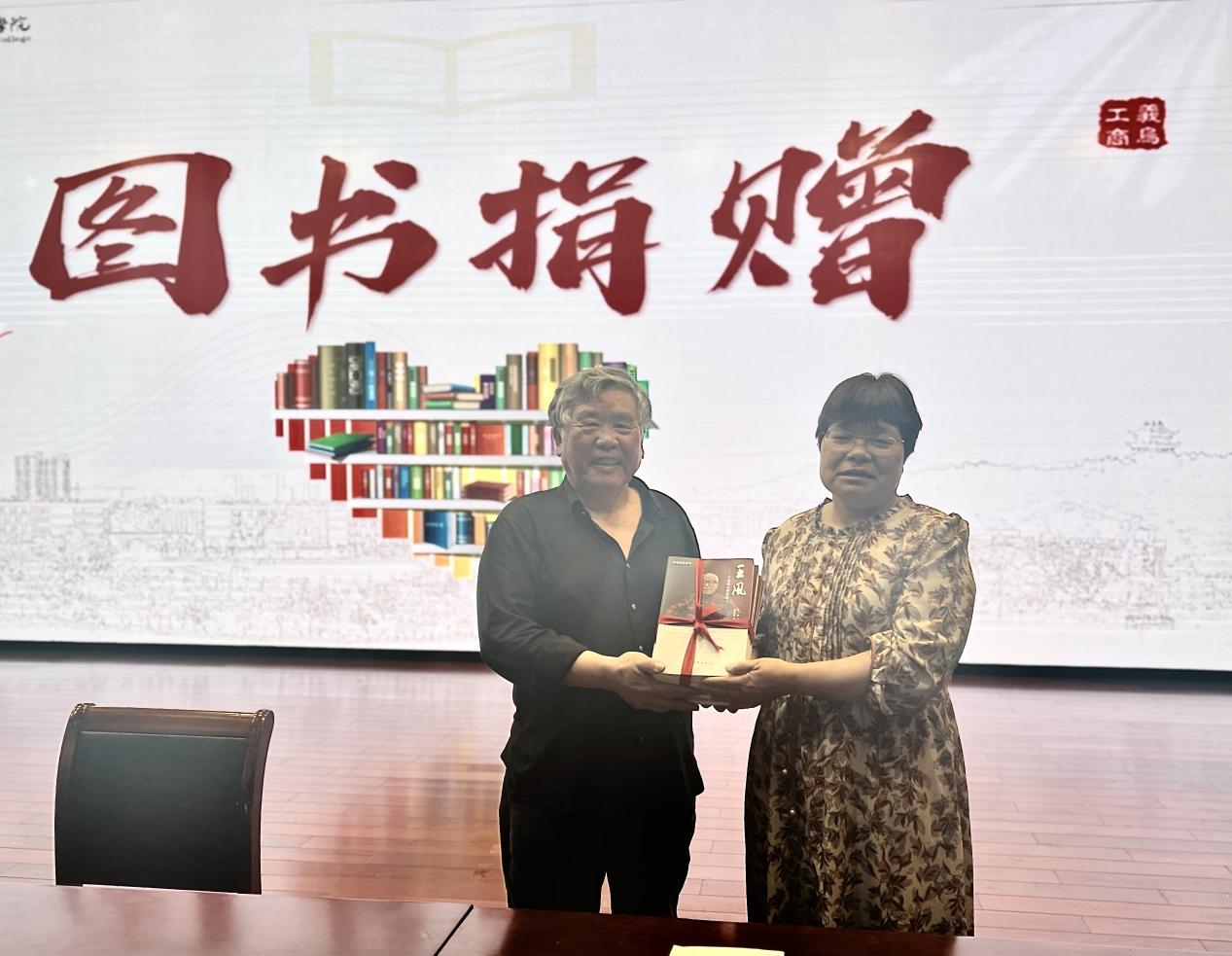 讲座结束后,贾沧斌先生向学校图书馆捐赠了他编著的《王风——不忘初心的世纪人》一书;该书是中华人民共和国成立后佛堂镇首任镇长、“老革命”王风老人的口述纪实作品,也是中共佛堂镇党史的珍贵史料。