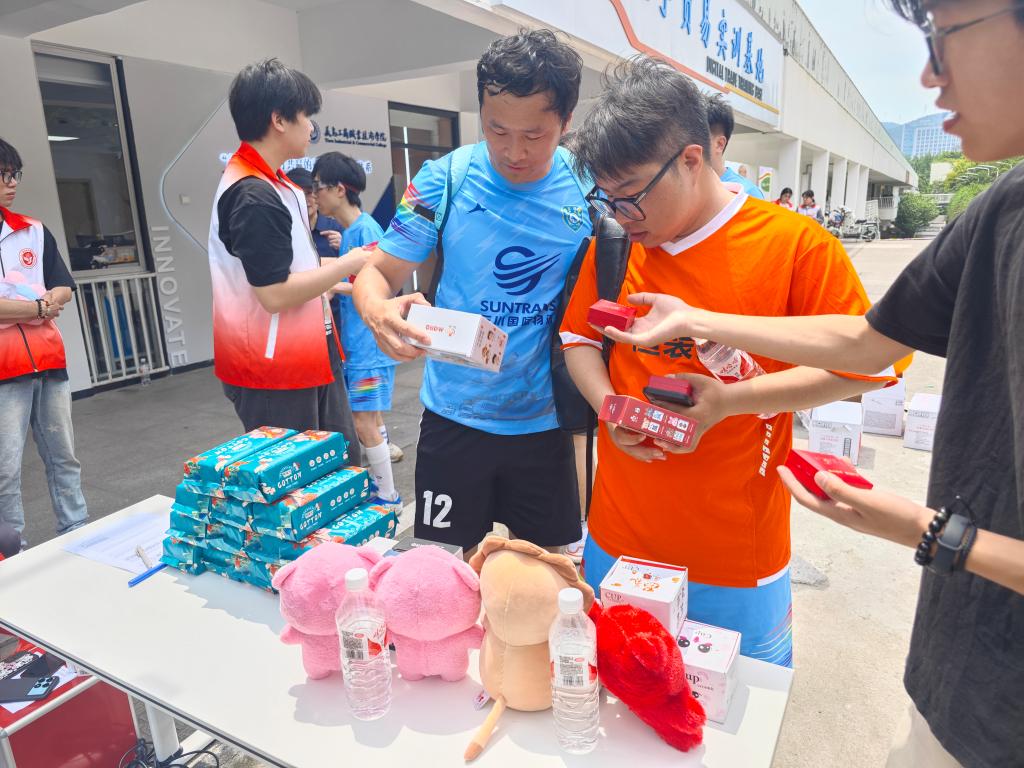 为了让这次活动更加难忘,学院还为每个项目的获胜者和参与者准备了精美的纪念品。据悉,这些纪念品都是由在校创业大学生赞助的创业产品。当校友们接过纪念品的那一刻,惊讶、好奇的表情溢于言表,他们纷纷在领奖区驻足。现场就有校友表达出想与在校创业大学生进一步沟通的意向。