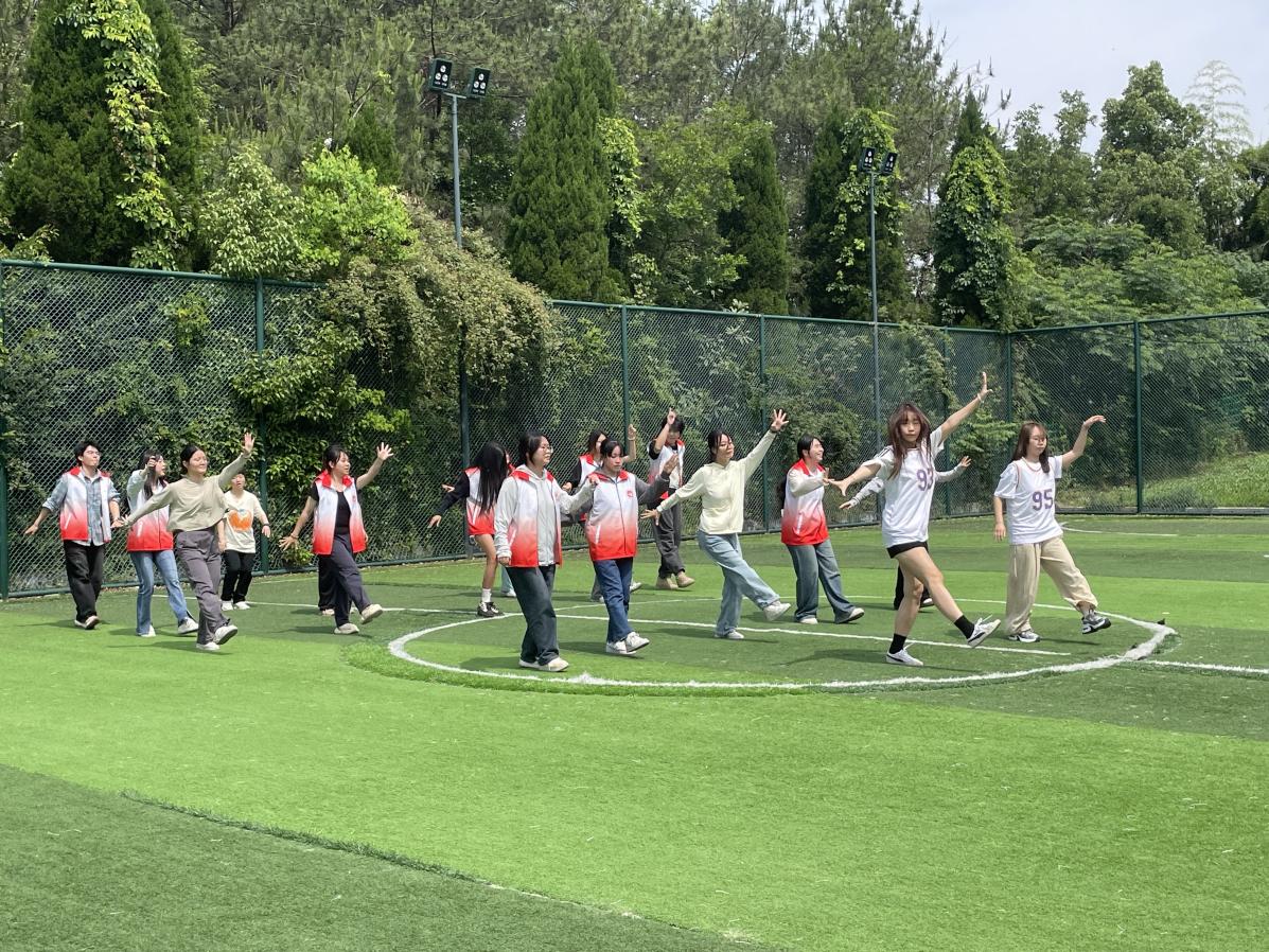 随着音乐的旋律,外语外贸学院青春舞团翩翩起舞,以充满活力的舞姿为运动会献上精彩的开场表演。许多围观的校友纷纷加入到队伍当中,跟着乐点一起摇摆起来。
