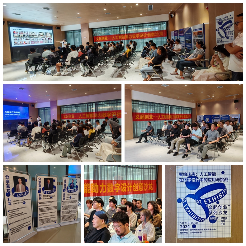 5月21日,由义乌市人力资源和社会保障局主办、义乌工商职业技术学院承办、义乌市创意园协办的人工智能助力数字设计创业沙龙活动,在国际商贸城四区圆满举行。国际商贸城市场经营户、创意园企业、创意设计学院师生、设计从业人员等50余人参加了活动。