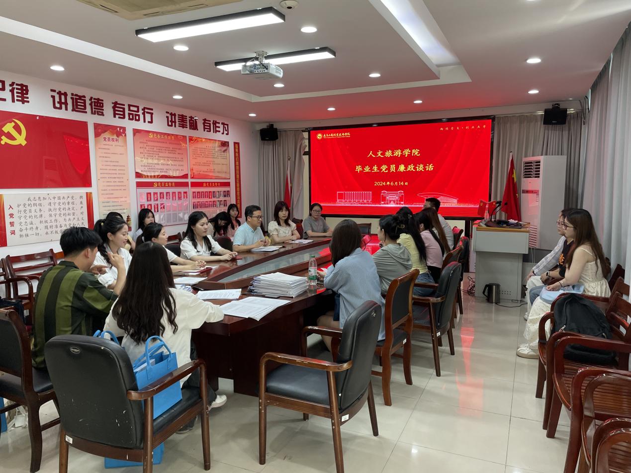 根据学校《uedbet,uedbet体育开展党纪学习教育的工作方案》要求,6月14日,人文旅游学院党委在学院会议室开展毕业生党员集体党日活动暨“四个一”行动,即接受一次廉政谈话、签订一份廉政承诺书、参加一次党规党纪培训、开展一次志愿服务。学院纪委负责人出席。