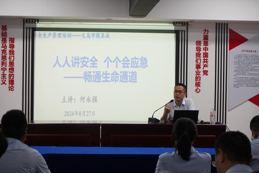 同时,结合模具城的安全生产管理的实际情况,针对模具城的安全生产管理开展了一场“人人讲安全,个个会应急——畅通生命通道”为主题的安全生产业务交流。从典型安全生产事故回顾、安全生产履职尽责剖析、安全生产法定职责落实三个方面展开。