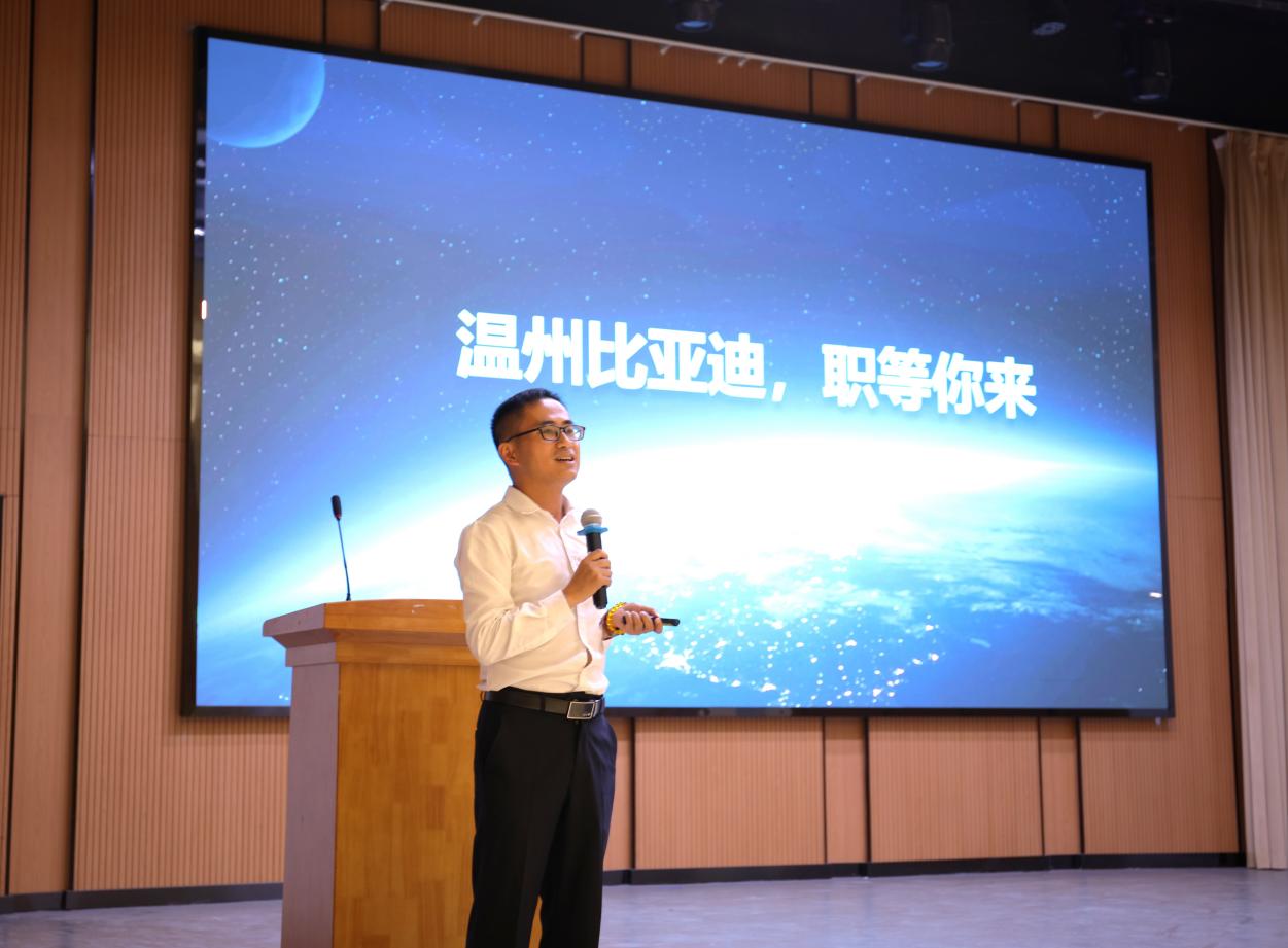 宣讲会上,温州比亚迪弗迪电池有限公司人事负责人颜主任详细介绍了公司情况、行业发展、业务板块、人才育成、员工晋升等情况。现场交流环节,同学们对招聘方式、岗位情况、工资待遇等提问,颜主任进行一一解答。通过交流,同学们对温州比亚迪本次宣讲活动及人才政策有了更深入地了解。