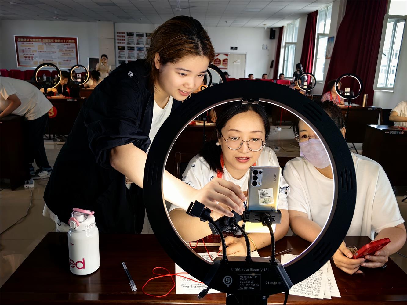 大学生教练张艳在山西天镇指导居家宝妈直播