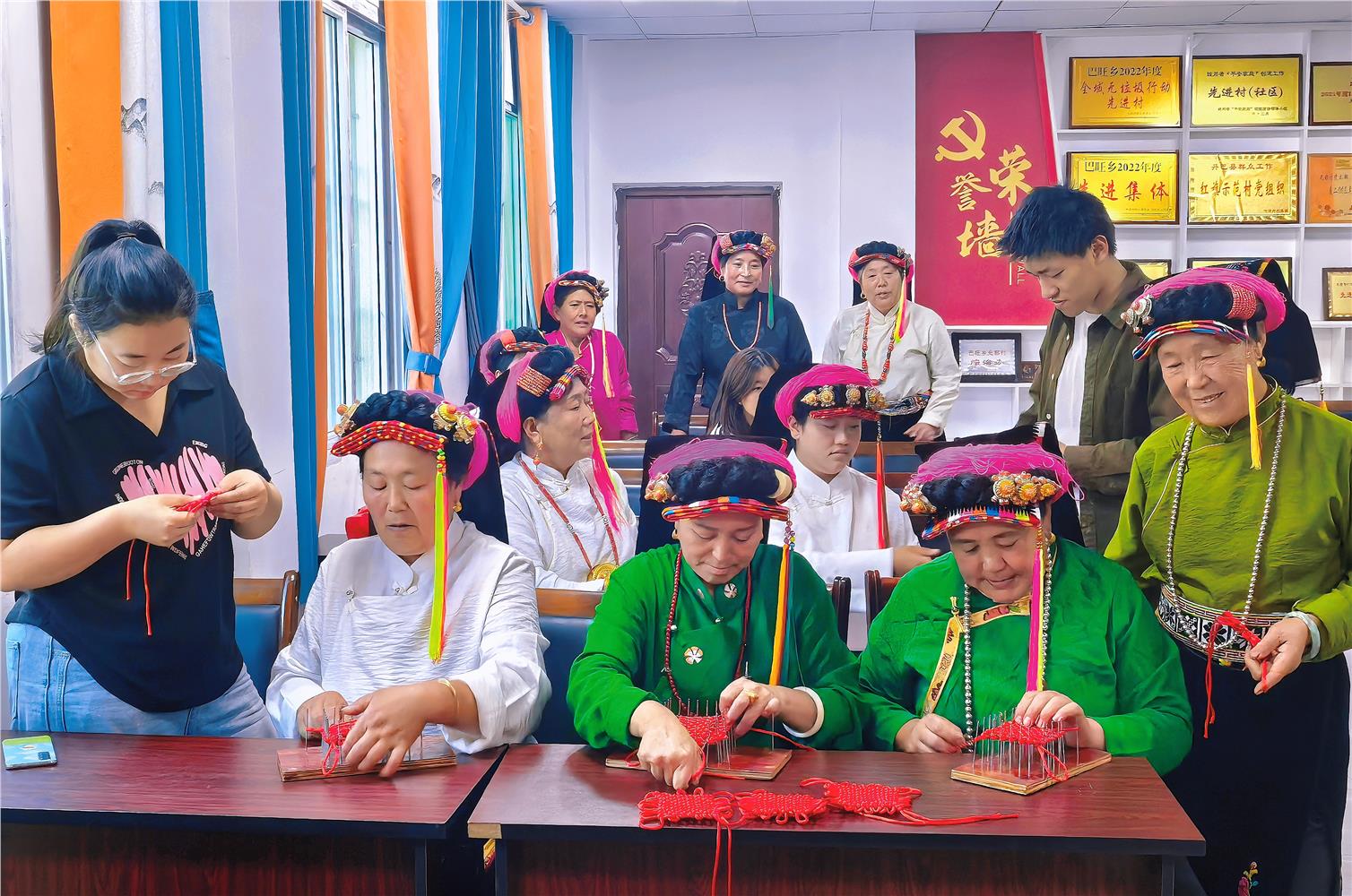 大学生教练郑名泽在丹巴县巴旺乡开展中国结编织教学