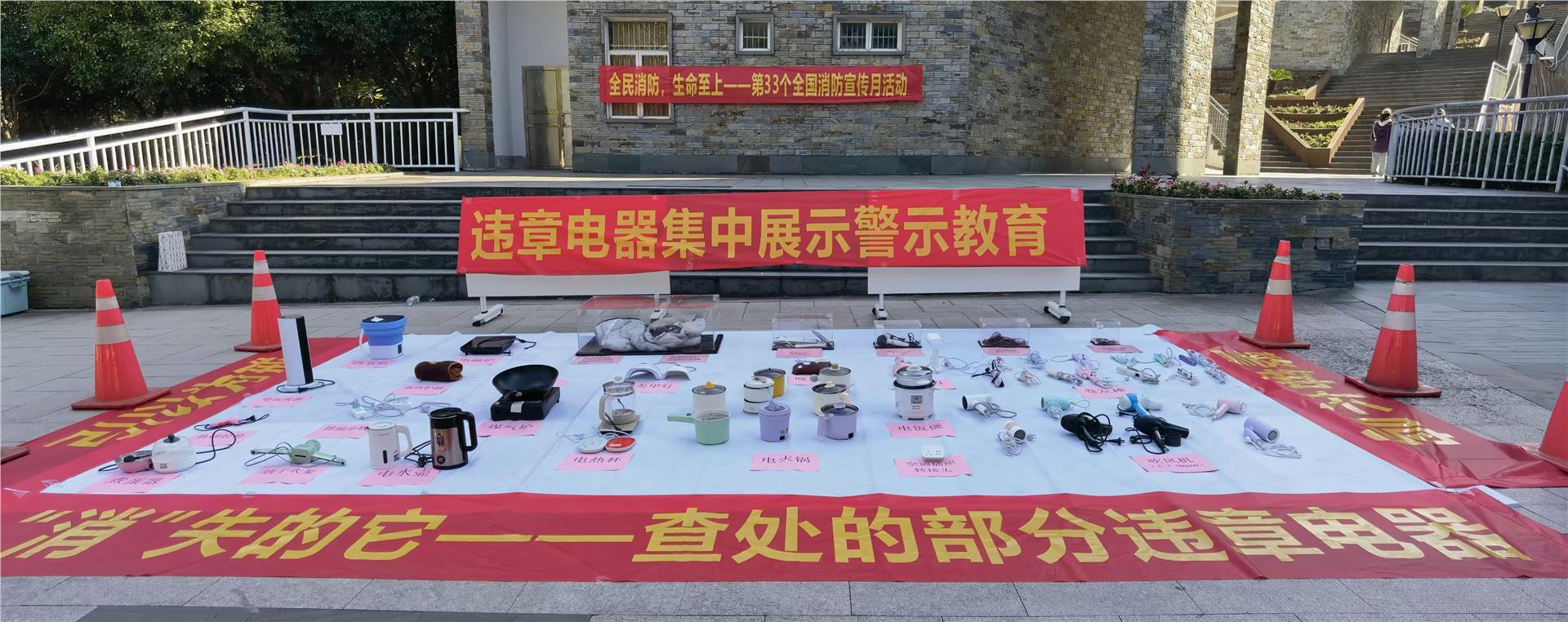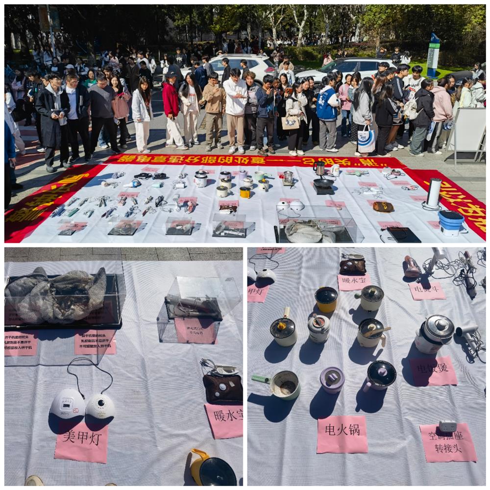 2024年11月9日是第33个全国消防日,11月份为全国消防宣传月,今年的主题是“全民消防,生命至上”。为进一步增强师生安全用电意识,学生处、安全保卫部联合外语外贸学院组织开展“‘消’失的它——违章电器集中展示警示教育”活动。