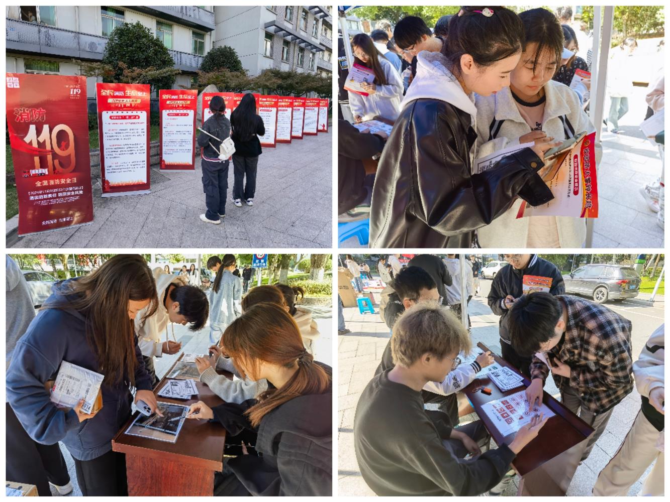 本次活动还设立了消防安全知识海报展和趣味互动区,通过“消防安全我来答”“消防隐患我来查”“消防标识我来认”等互动环节加深了师生对消防安全的认知和理解,直接吸引了500余名师生现场参与。“消防安全我来答”还以线上知识问答形式向全校师生推广。
