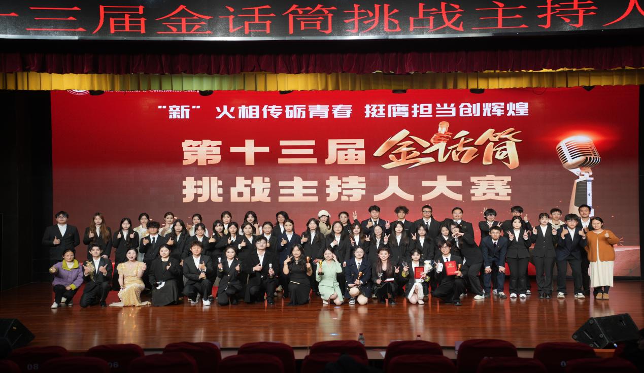 经过了初赛和复赛的层层选拔,来自全校的十名选手一路披荆斩棘,最终站在了决赛的舞台上。选手们精心准备的节目内容丰富,形式多样。在模拟主持环节,选手们展示了语音语调、语言组织、逻辑思维、形体仪态、表情管理等方面的能力。才艺展示环节更是高潮迭起,选手们通过朗诵、舞蹈、唱歌、配音等形式,展现了自己的多才多艺,现场氛围被推向了高潮。最终通过两个环节的激烈比拼,来自人文旅游学院的胡宇桐摘得桂冠,荣获“金话筒”称号。此外比赛还评出银话筒两名、铜话筒三名,最佳台风奖、最佳潜质奖、最佳才艺奖、最佳口才奖各一名,并由评委嘉宾们为获奖选手颁发奖杯和证书。“金话筒”挑战主持人大赛在观众热烈的掌声中圆满落下帷幕。