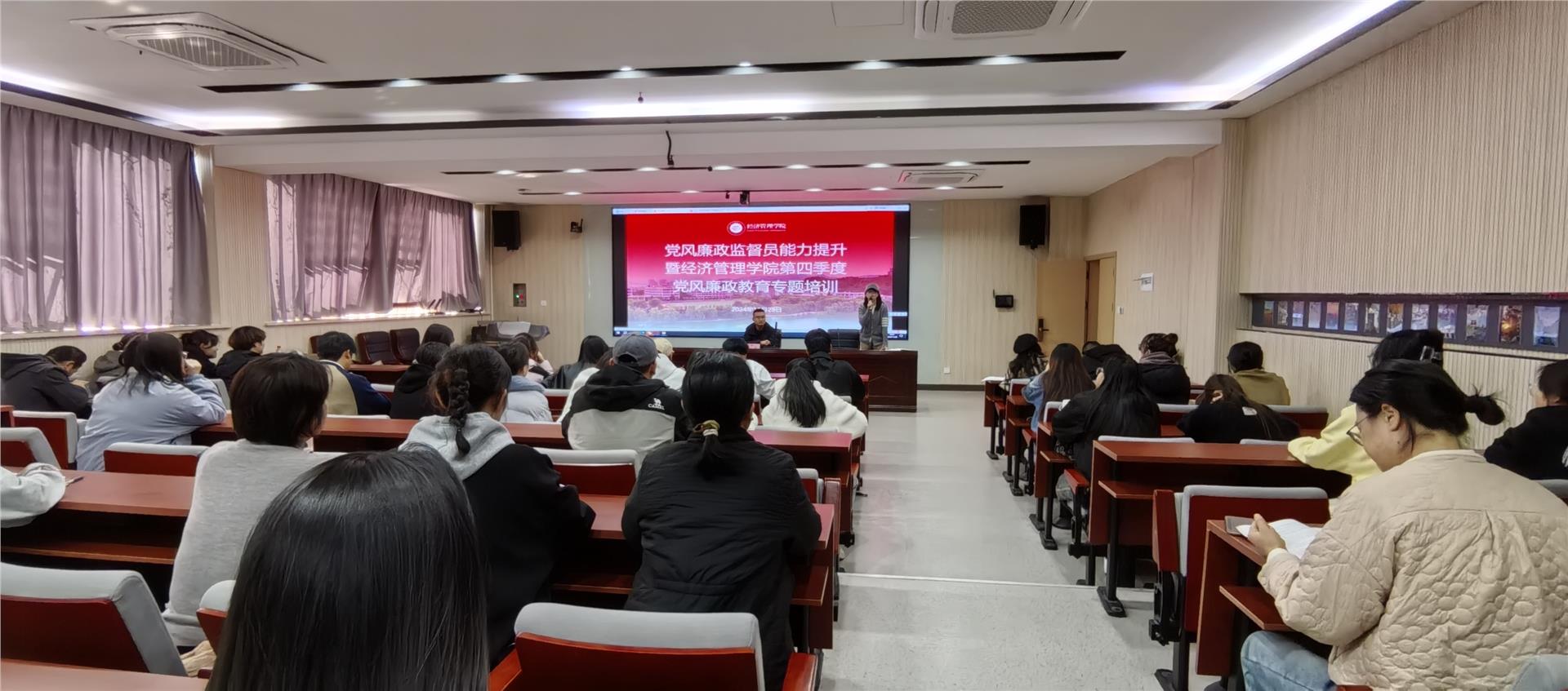 为进一步加强党风廉政建设,把廉洁教育贯穿立德树人全过程,近日,学校邀请义乌市纪委党风政风监督室副主任金立开展题为“筑牢廉政防线,提升监督效能”党风廉政监督员能力提升暨第四季度党风廉政教育专题培训会。该活动由经济管理学院纪委承办,各学院党风廉政建设监督员、党员教师代表及学生党员代表参加。