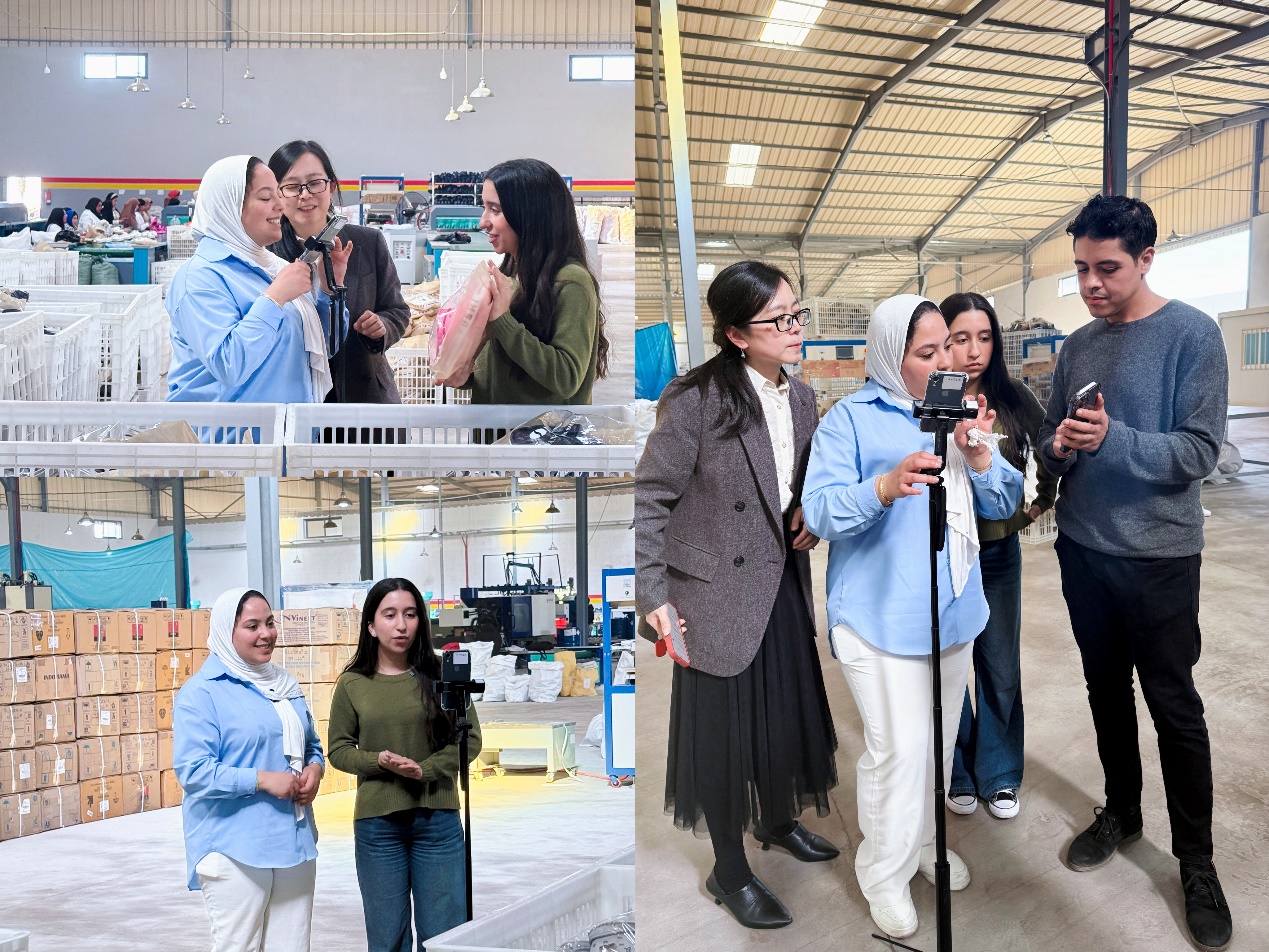 当天下午,为检验学生《跨境电商直播》课程的教学成果,摩洛哥义乌商学院外派教师带领学生走进傅总企业,开展了一场跨境电商直播实践活动。学生们通过多语言解说、实时互动和专业化产品展示,为企业吸引了大量在线海外消费者。傅总对学生们的表现给予高度肯定,认为他们展现了扎实的技能和跨文化沟通能力,为企业品牌拓展海外市场注入了新的活力。