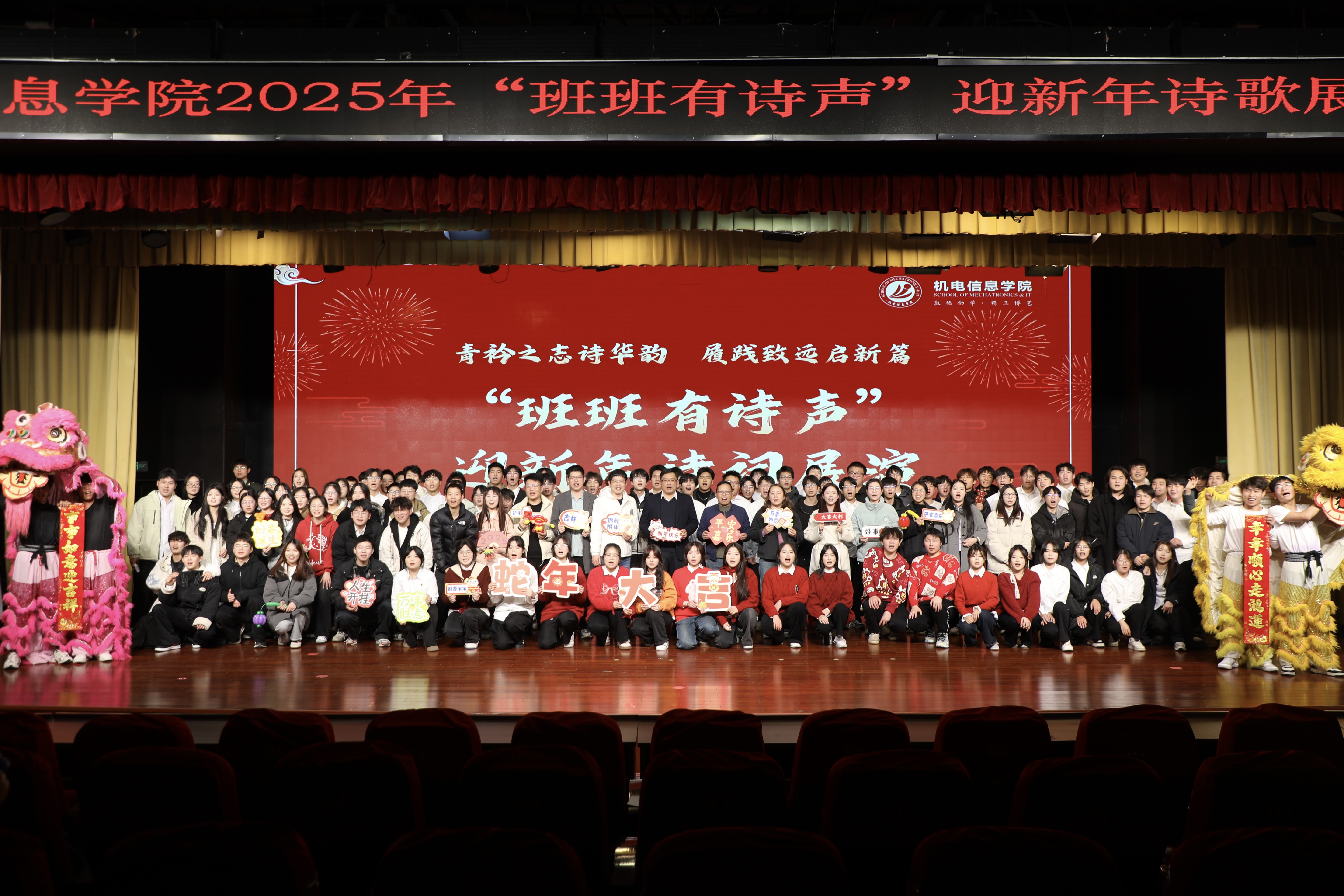 华章落幕,新岁序开。机电信息学院在丹溪文化厅圆满举行了“青衿之志诗华韵 履践致远启新篇”为主题的“班班有诗声”诗歌展演迎新年活动。校宣传部、学生处、团委、安保部负责人受邀参加,学院领导班子成员、班主任、辅导员及各班级代表到场观看,师生欢聚一堂,共度美妙诗词之夜。本次活动由机电信息学院团委学生会承办,文亮教育和西培教育给予支持。