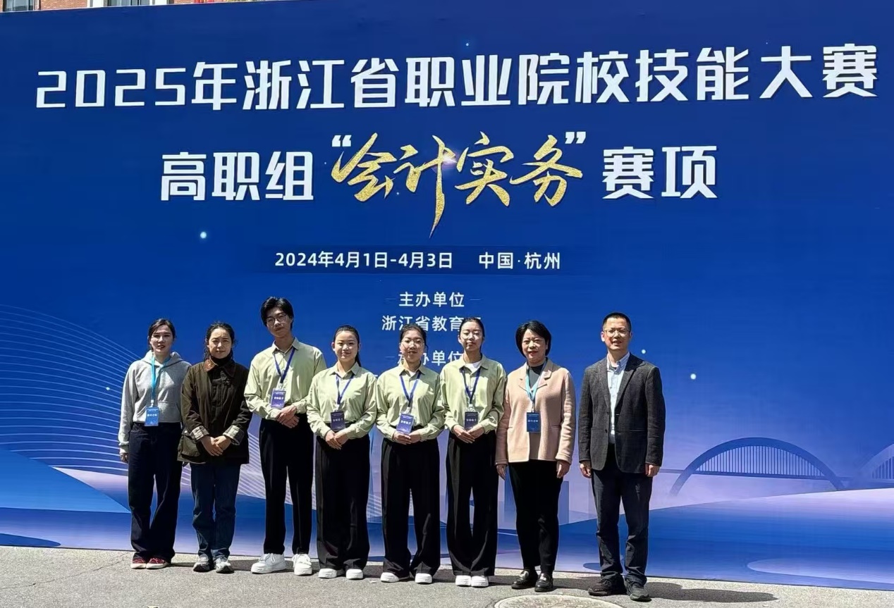 4月1日至3日,2025年浙江省职业院校技能大赛高职组“会计实务”赛项在浙江经贸职业技术学院圆满落幕。由经济管理学院大数据与会计专业胡源珍、宓海燕、陈淑莹、倪硕莲老师指导,张洋、丁瑶、陈智威、吴鑫盈四位同学组成的团队,经过激烈角逐,以小组第三的成绩荣获比赛银奖。