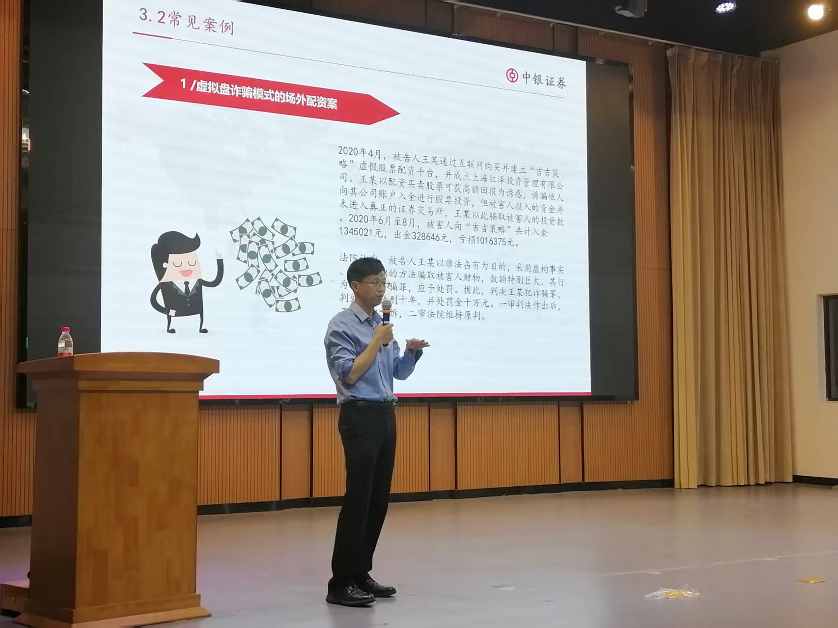 在金融安全专题环节,他分享了非法投资的常见形式,如高息诱惑、虚假项目等,并传授辨认非法投资的方法,提醒同学们务必提高警惕,保护好个人财产安全。