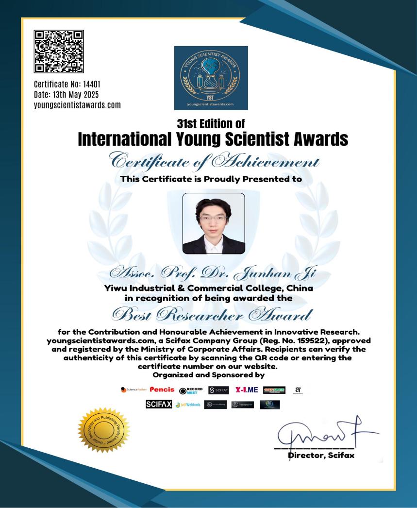 Science Father是隶属于国际学术出版与会议组织Scifax旗下的重要学术机构,其“最佳研究者奖”主要授予在创新研究领域做出贡献的学者。该奖项评审标准涵盖研究成果的质量、原创性、影响力及未来发展潜力。近年来,北京大学、中国科学院、上海交通大学、吉林大学等众多高校学者也曾荣获此奖项。