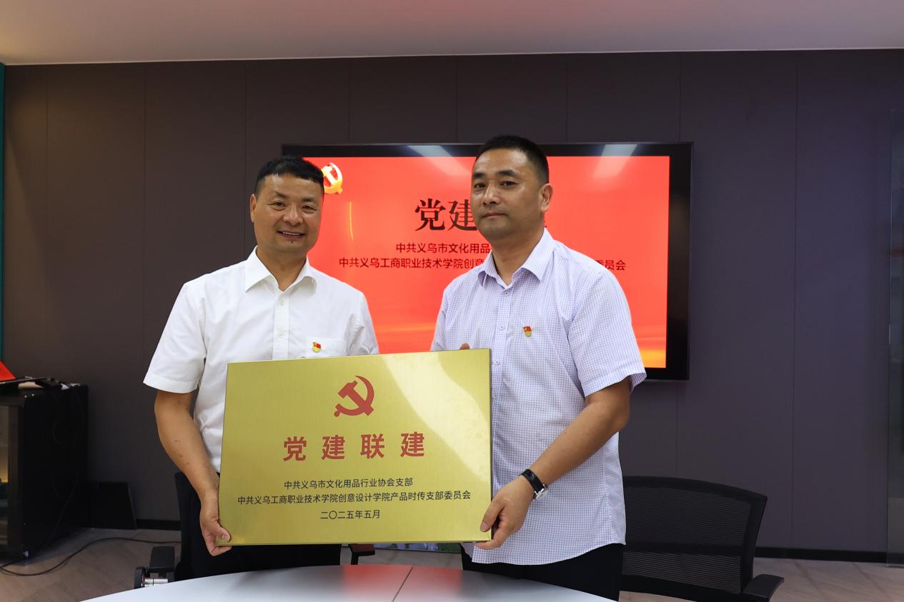 近日,义乌市文化用品行业协会党支部与义乌工商职业技术学院创意设计学院产品时传党支部携手开展党建联建活动,并举行战略合作签约与授牌仪式。