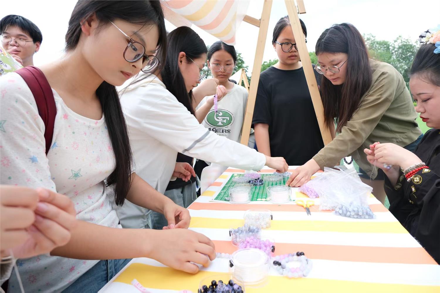 同学讲解中国结与串珠工艺