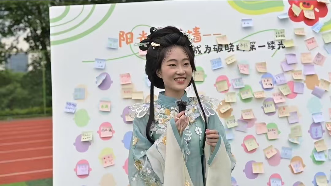 汉服社巧妙设计“文化+心理”双线并行的活动模式:参与者既可根据传统文化制作寓意吉祥的珠串样式,亦可自由创作个性化饰品。现场参与者说:“指尖流动的不只是丝线串珠,更像是把传统文化的温度编织进了心里。”活动现场还特设汉服妆造展示,传统华服衣袂翩跹间,传统审美与现代心理关怀实现诗意交融。
