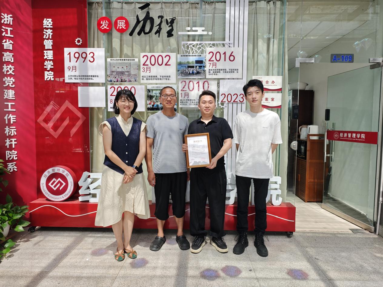 拳拳爱心,筑梦未来。6月17日,东阳市五只鹅服饰有限公司总经理、2012级工商企业管理专业创业校友徐毅凡向学院捐赠160件速干服,用于支持学生开展暑期社会实践等活动。他表示,希望为学弟学妹们提供实际帮助,传承经管人的“”饮水思源,反哺母校的“情义”担当。这份源于同窗情、系于母校的慷慨之举,将校友力量转化为支持后学扬帆起航的温暖星光。