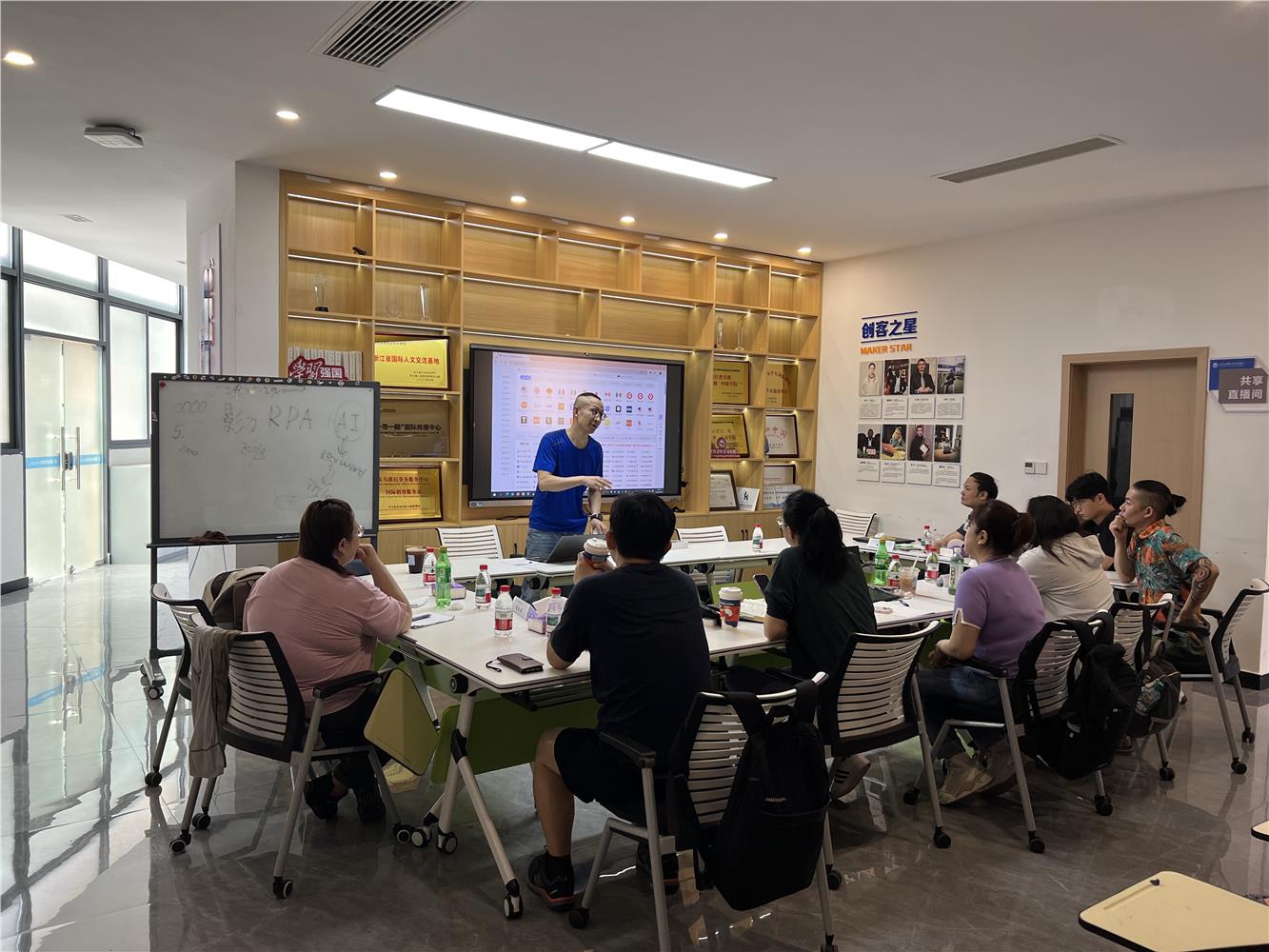 实践环节中,学员走进义乌国际商贸城、热麦传媒及陆港电商城,沉浸式感受义乌跨境电商产业生态。在国际商贸城,琳琅满目的商品与繁忙的商贸景象,直观展现义乌作为“世界小商品之都”的供应链优势;热麦传媒作为头部MCN机构,其直播基地内多品类直播间的实时运营、主播团队的专业展示,让学员近距离体验直播电商的运作模式与流量变现路径;陆港电商城则以“产教融合”为特色,学员在此参观跨境电商企业运营中心,与创业者面对面交流,深入了解从仓储物流到品牌出海的全链条服务体系。参访过程中,学员还亲自参与直播选品策划、短视频拍摄等实操活动,将课堂知识转化为实战经验。