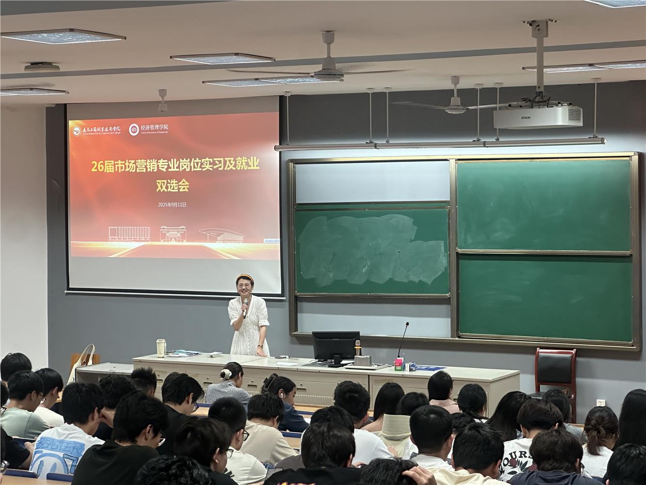为深化产教融合,搭建校企合作平台,助力学生高质量就业,9月11日,经济管理学院市场营销专业岗位实习及就业双选会在阶梯教室一举行,2026届市场营销专业全体学生到会。本次双选会汇聚了金华亚通汽车销售有限公司、福州塔斯汀餐饮管理有限公司、杭州联华华商集团、义乌市双童日用品有限公司等多家知名企业,为学生提供涵盖市场策划、数字营销、客户管理、销售培训等多元实习岗位。