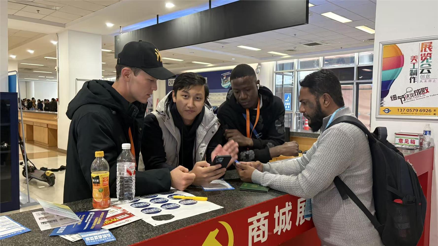 在义博会现场,帮扶小组的同学们分布在展会咨询、客商引导、翻译服务、展区协调、信息统计等多个关键岗位。会展专业的实习生们凭借其专业敏感性和实操能力,迅速熟悉展会布局、参展商信息及各项流程,高效协助组委会完成了参展商对接、观众引导、现场秩序维护等工作。他们耐心解答中外客商的疑问,精准指引展位位置,细心处理各类突发情况,展现了扎实的专业功底和良好的应变能力。国际生们则充分发挥语言优势,在国际展区与外商之间搭建起顺畅的沟通桥梁,提供英语、俄语、西班牙语等多语种翻译服务,帮助外商更好地了解参展商品信息、洽谈合作意向,有效促进了中外客商的交流与互动。