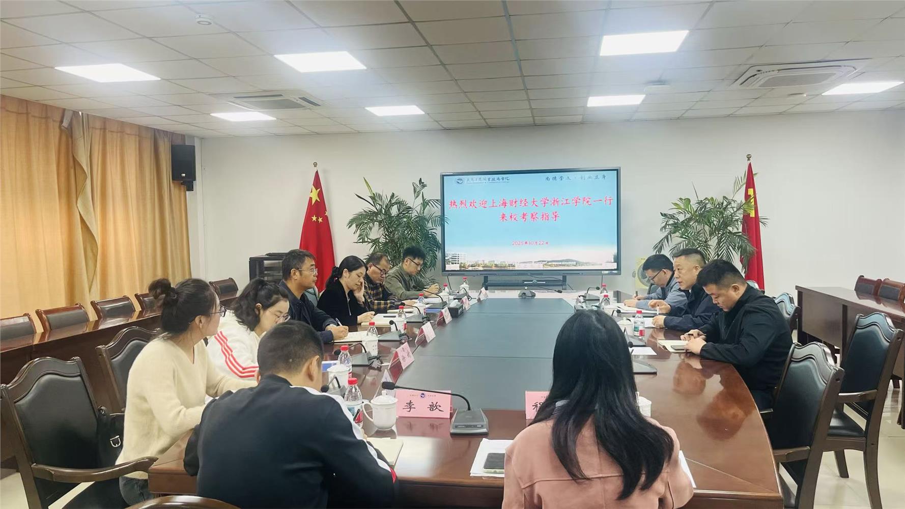 10 月 22 日,上海财经大学浙江学院党委委员徐玉芳一行八人莅临uedbet,uedbet体育,开展考察交流活动。校党委委员、副院长樊曜出席座谈会并致辞,学校安保部、后勤处负责人陪同接待。