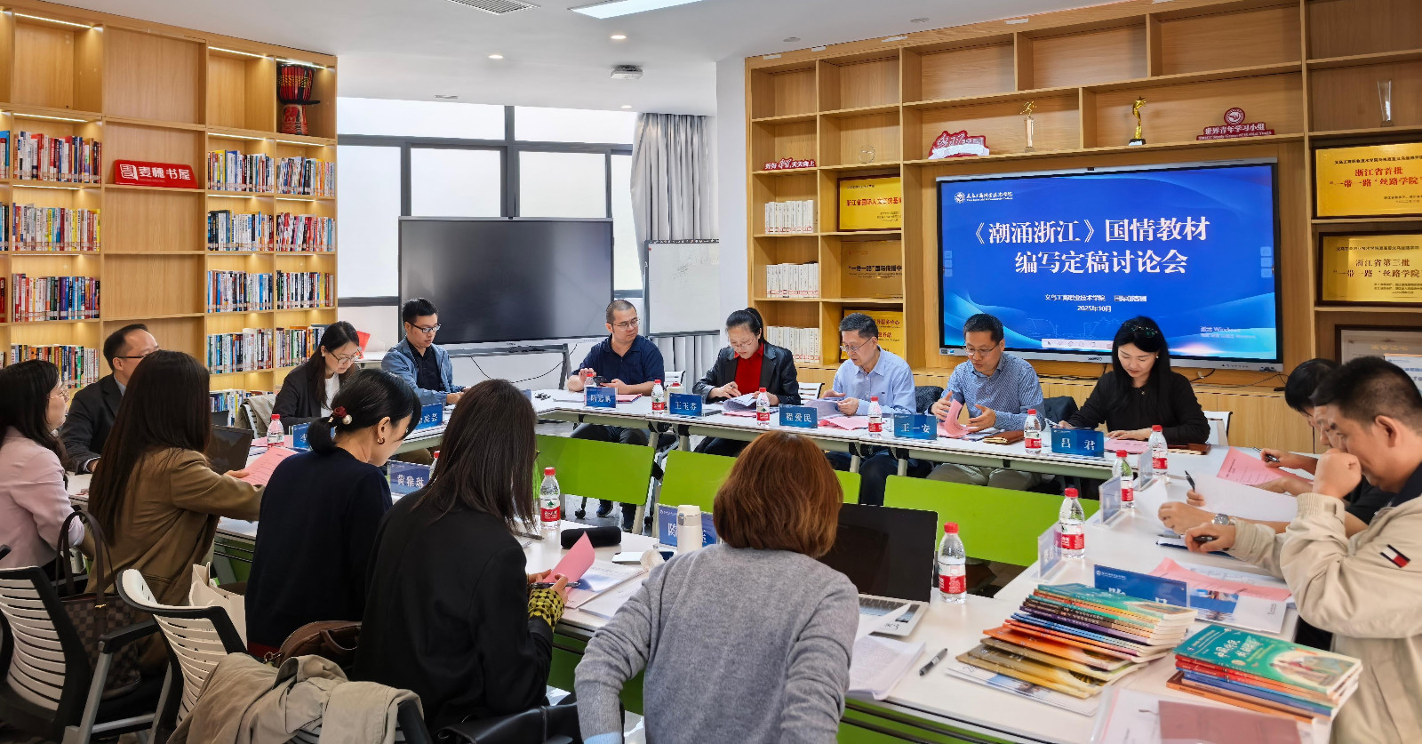 2025年10月25日,中国国情教育地方特色系列教材《潮涌浙江》(暂定名)定稿讨论会在义乌工商职业技术学院召开。此次会议汇聚了来自浙江大学、浙江工业大学、杭州电子科技大学、杭州师范大学、浙江科技大学、宁波大学、温州大学、义乌工商职业技术学院等浙江八所高校的留学生教育主管部门领导、专家学者及骨干教师,同时邀请上海外语教育出版社、浙江省文化广电与旅游厅、浙江广电集团相关负责人共同参会,从文化宣传、出版规范等多维度建言献策,为教材内容的严谨性、科学性与实用性筑牢质量防线。