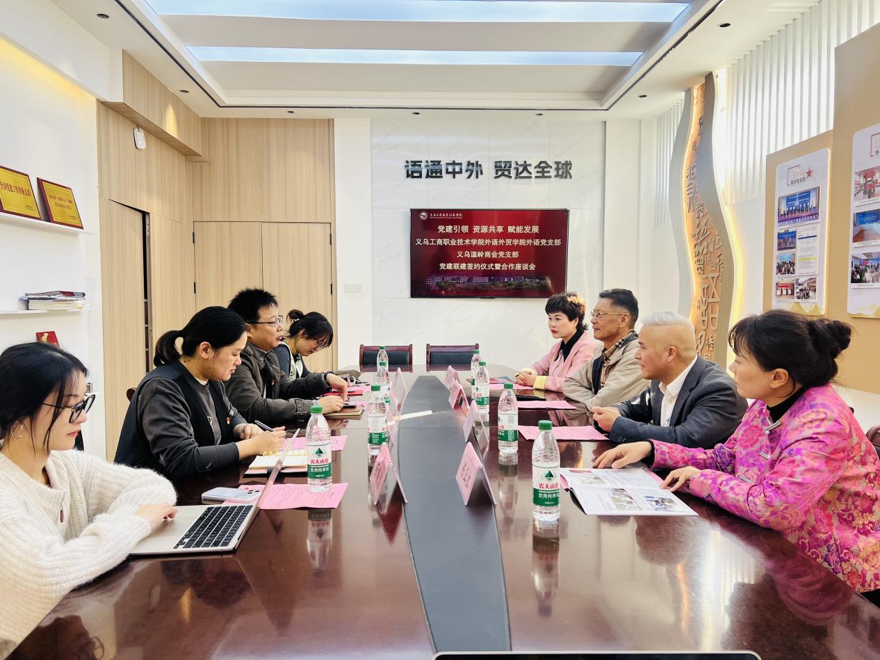 为创新党建工作模式,深化产教融合,近日,义乌工商职业技术学院外语外贸学院外语党支部与义乌温岭商会党支部成功举行党建联建签约仪式。双方旨在通过党建统领,实现资源共享与优势互补,共同开启校地合作新篇章。