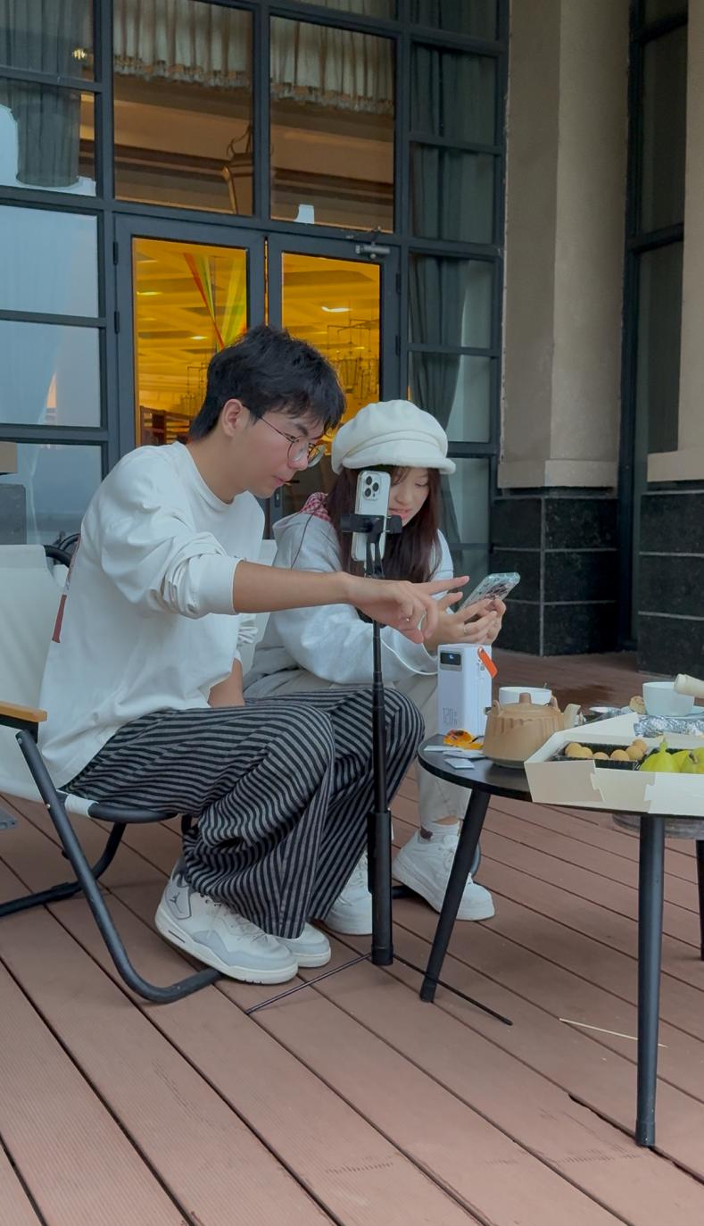 在全球数贸中心开业期间,朱海涛同学再次展现其团队领导力,带领创业学院大一、大二的40名学生主播,为店铺推广直播。团队采取“一店一主播”的策略,将主播分配到不同店铺,为商家提供个性化的直播推广服务。通过直播,商家们不仅吸引了大量线上观众,还成功将线上流量转化为线下客流,为全球数贸中心的开业增添了浓厚的商业氛围。